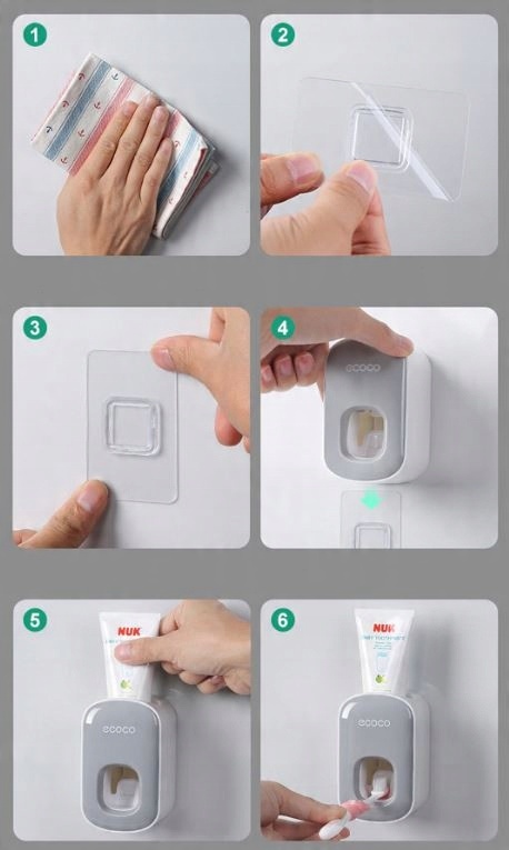 Просто очистите стену, где будет установлен дозатор, затем приклейте прилагающуюся самоклеящуюся наклейку с держателем и наденьте на нее дозатор сверху, и все! :)