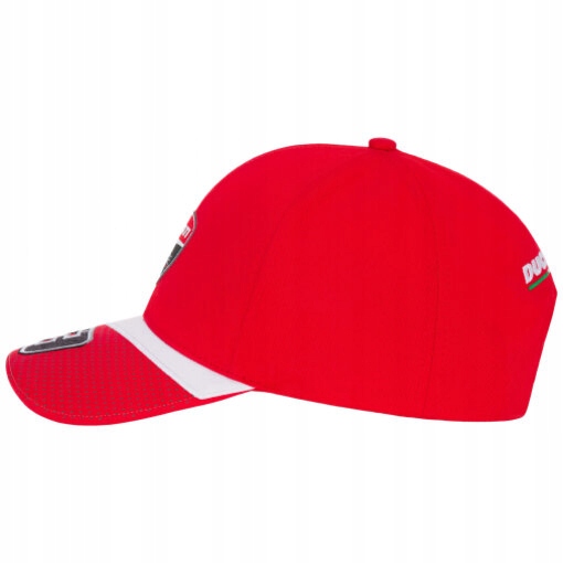 Бейсболка из коллекции Ducati Dual, созданная в сотрудничестве с Данило Петруччи. Красная кепка с белыми деталями, логотип Ducati спереди и номер 9 итальянского гонщика на козырьке. Кроме того, на задней части кепки имеется надпись Ducati Corse.