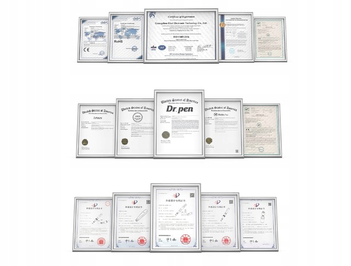 Устройство соответствует всем необходимым стандартам, допущено к продаже и отмечено знаком CE. Dr Pen A6S Ultima сертифицирована RoHS, LVD, EMC, ISO13485 и FDA.