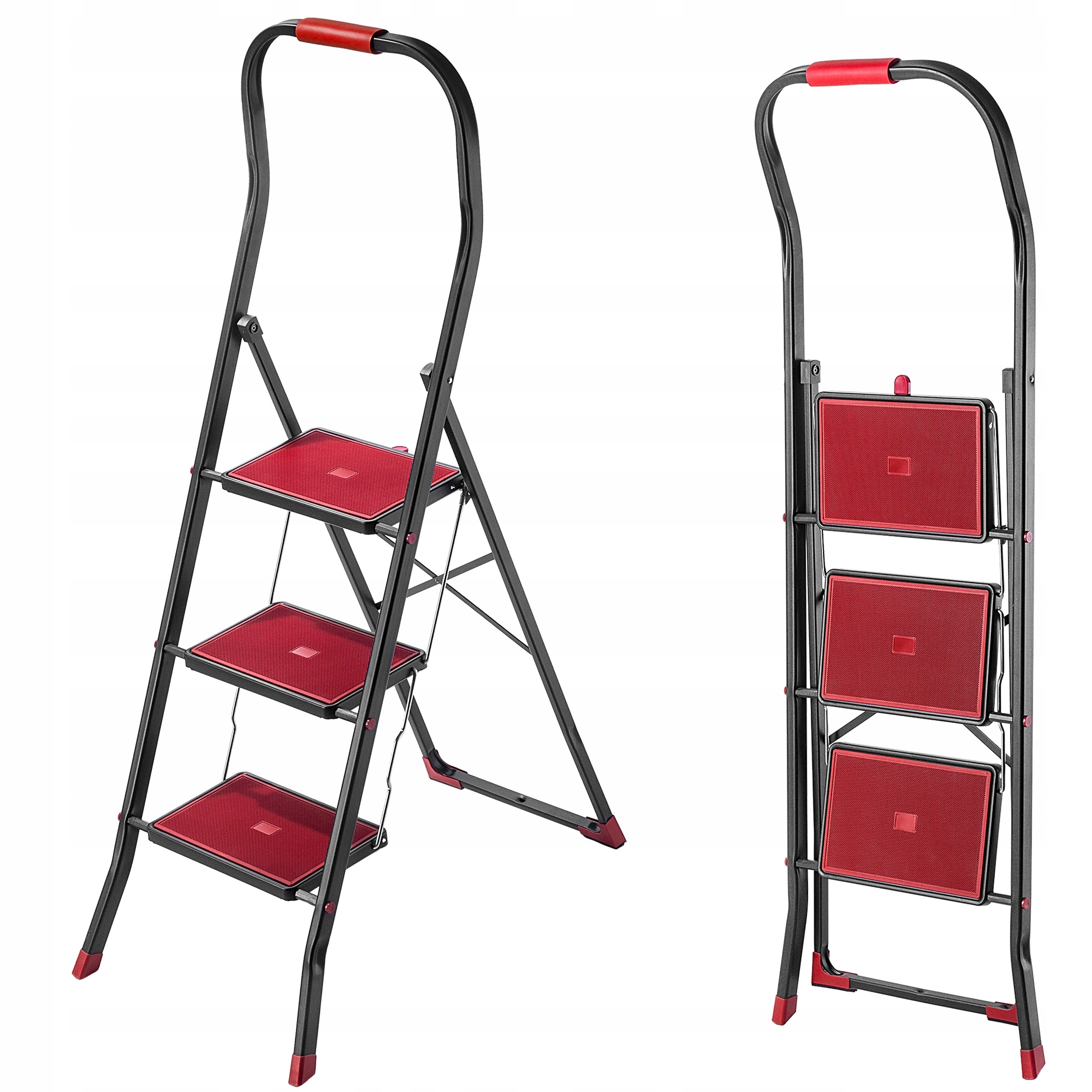 ✅РАЗЛИЧНЫЕ ТИПЫ - складная стальная лестница доступна в версия с 2 и 3 шагами. Его выразительный черно-красный цвет будет выделяться на фоне других устройств. Выберите модель, которая лучше всего подходит для вас, и наслаждайтесь безопасной лестницей для повседневного использования.