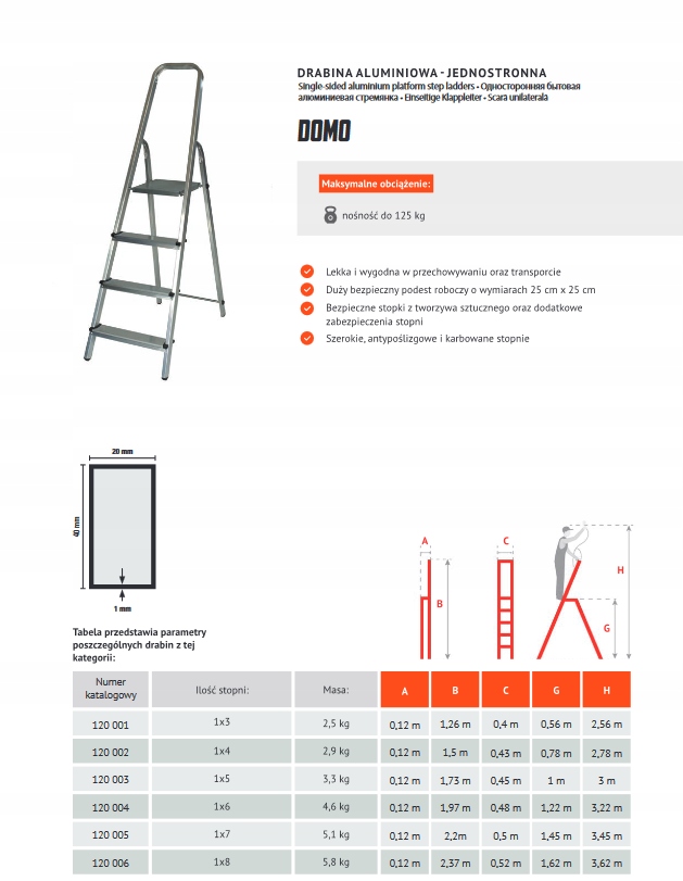 ЛЕСТНИЦА ОДНОСТОРОННЯЯ АЛЮМИНИЕВАЯ 1x7 DOMO (125кг)