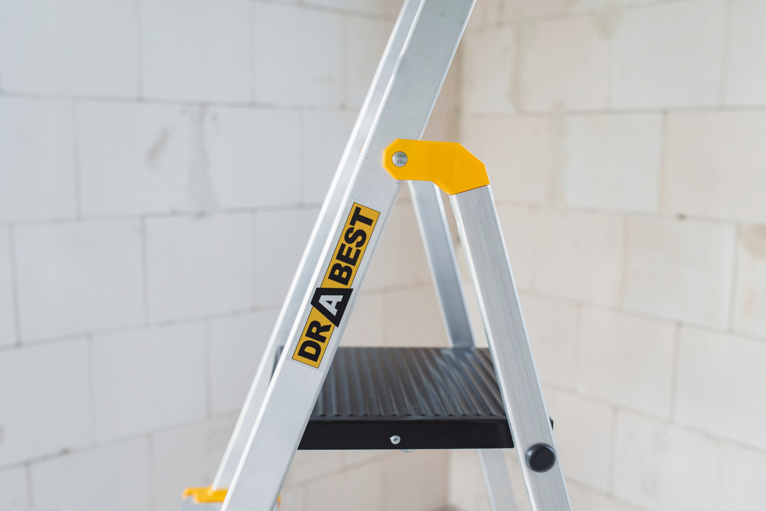 Драбина побутова алюмінієва З ПОЛИЧКОЮ 7 СТРОПІВ 50% Ширше DRABEST
