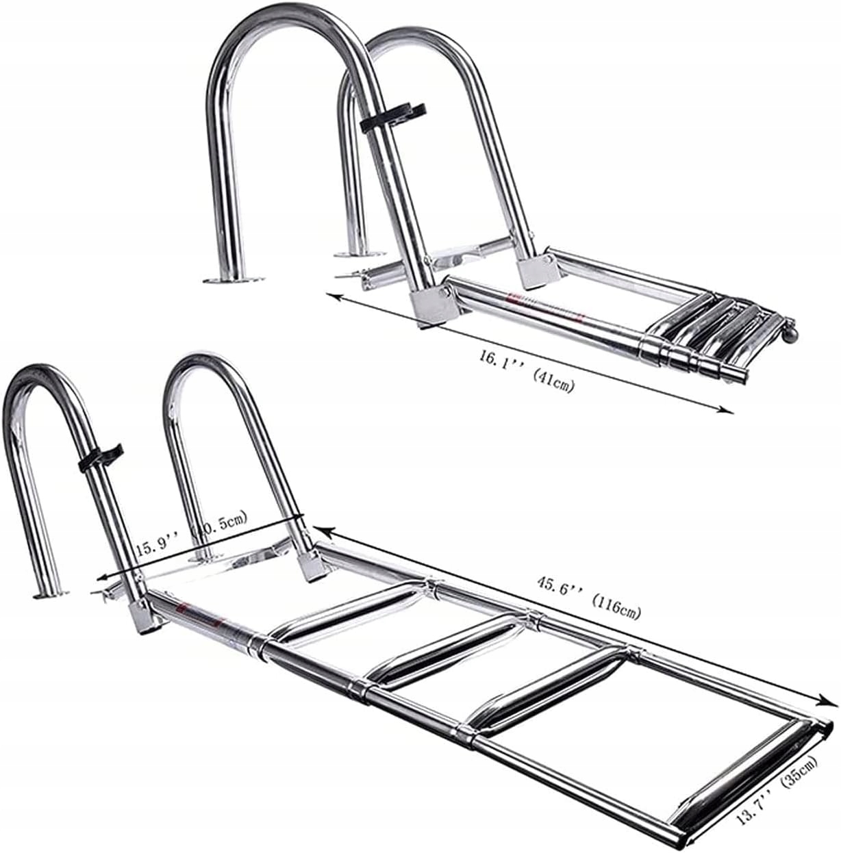ЛЕГКАЯ УСТАНОВКА — лестница поставляется со всем крепежом, просто прикрепите ее к нужному фиксированному положению. Идеально подходит в качестве лестницы для бассейна/палубы/морской яхты.