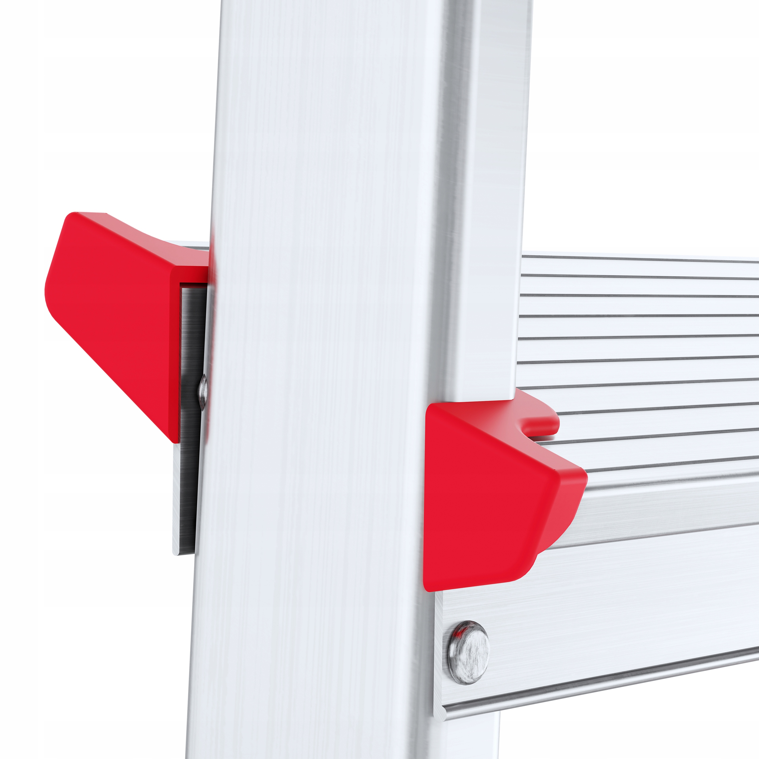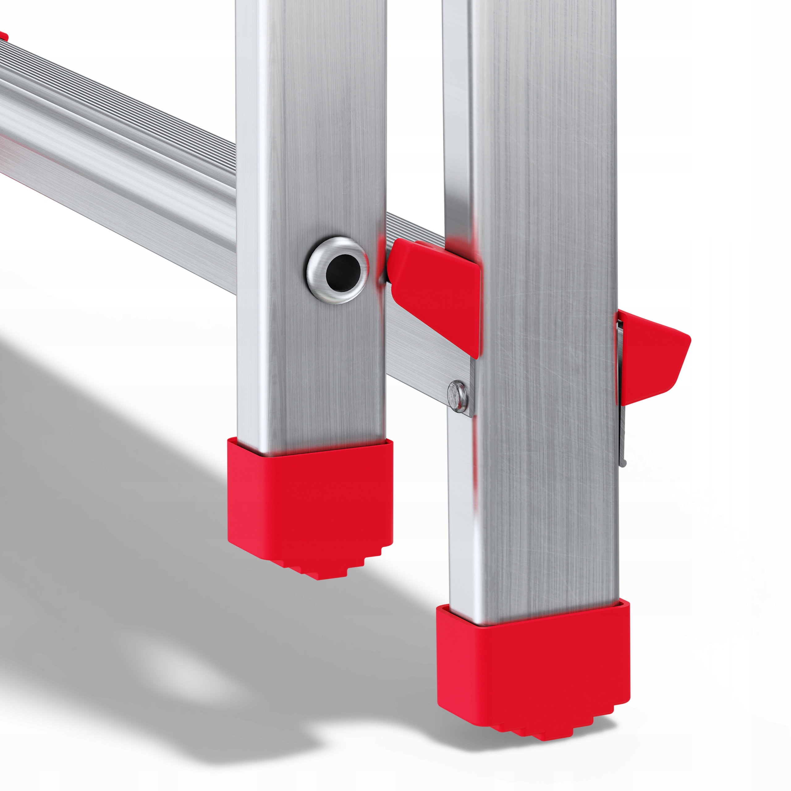 Ножки интенсивного красного цвета тщательно профилированы, чтобы идеально прилегать к земле и обеспечивать устойчивое основание. Кроме того, они защищают пол от царапин и повреждений, что делает наши лестницы идеальным выбором для любого типа работ, как внутри, так и снаружи помещений.