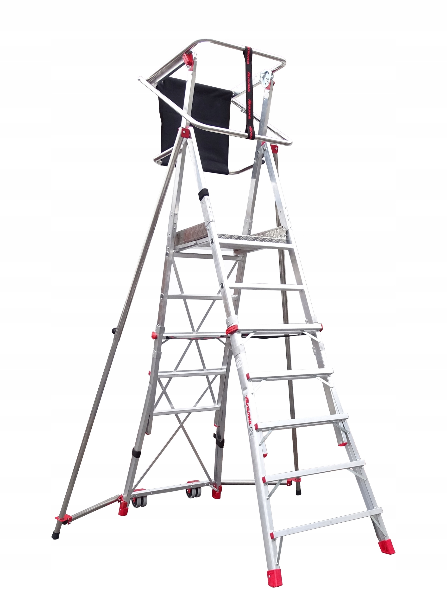 - Профессиональная алюминиевая телескопическая лестница с регулировкой высоты платформы.