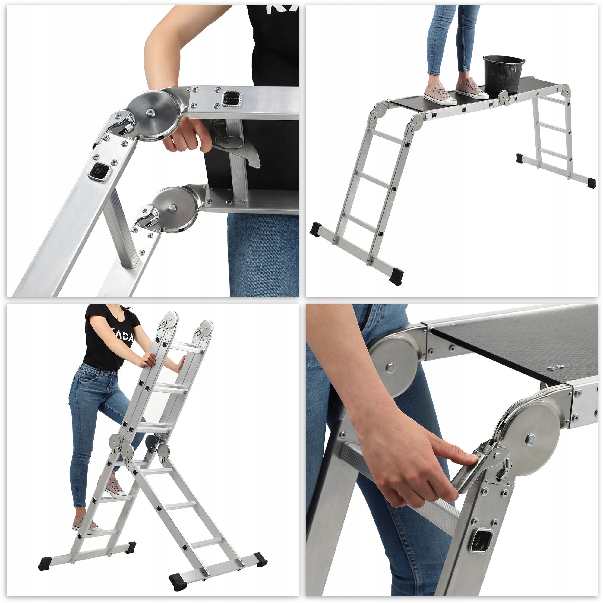 Алюминий Многофункциональная лестница - действительно отличный инструмент для всех. Имеет четыре варианта конфигурации , так что вы можете легко адаптировать его к условиям работы