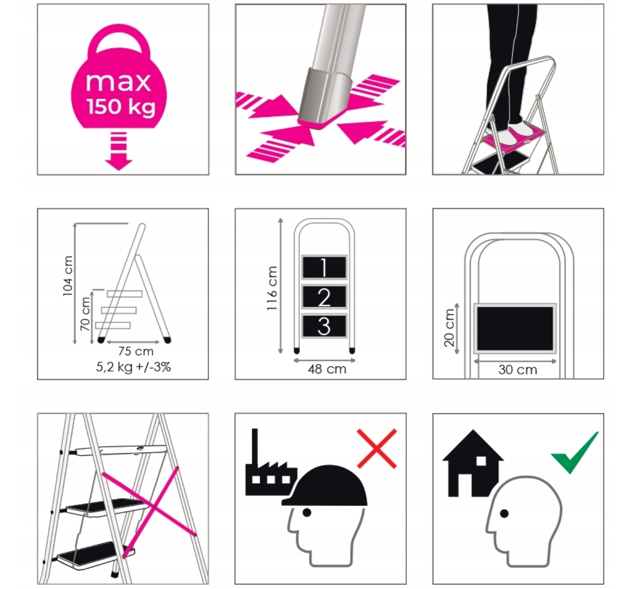 - Размеры лестницы: 104 x 48 x 75 см