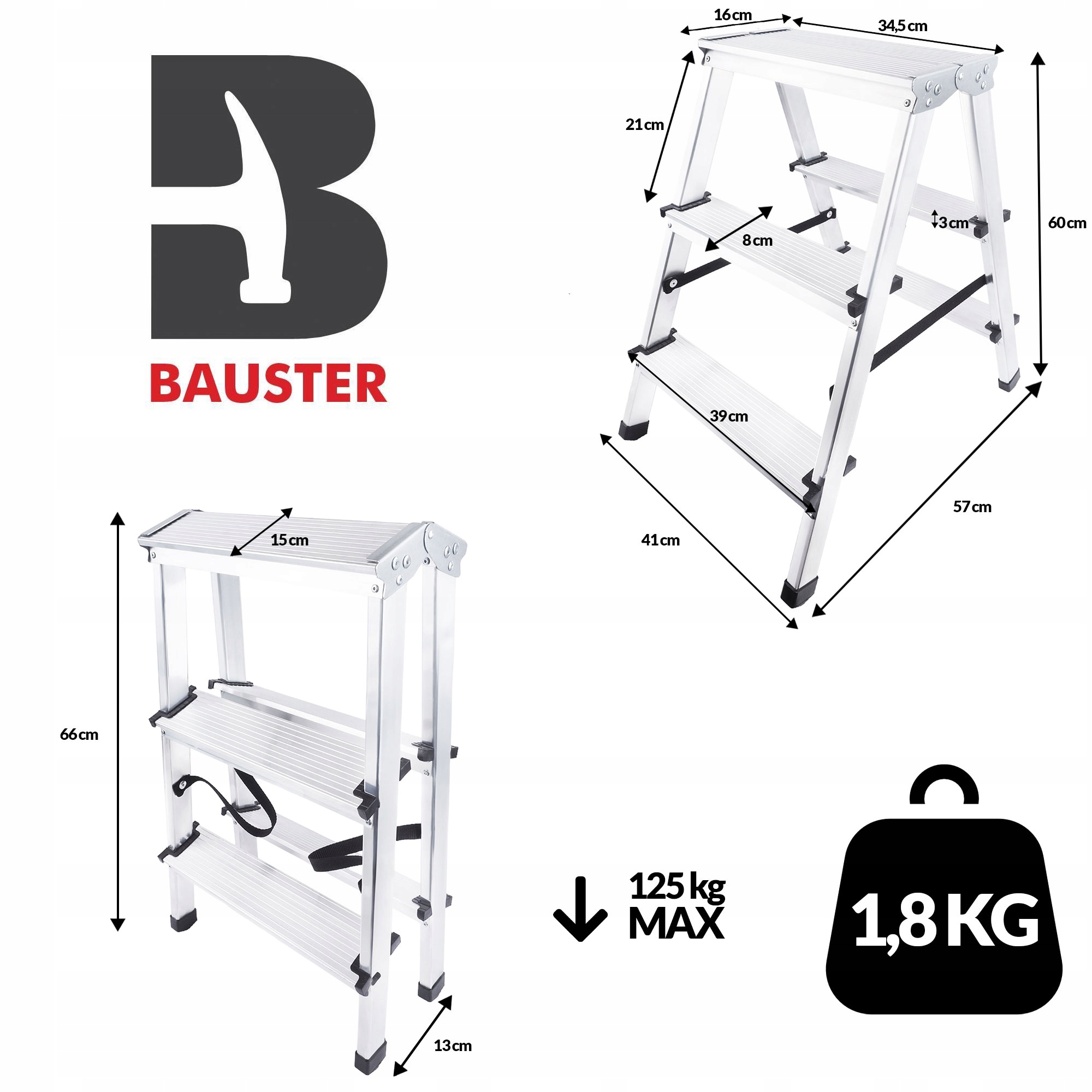 ✅ Трехступенчатая алюминиевая лестница требует минимального ухода. Он не ржавеет и легко чистится.