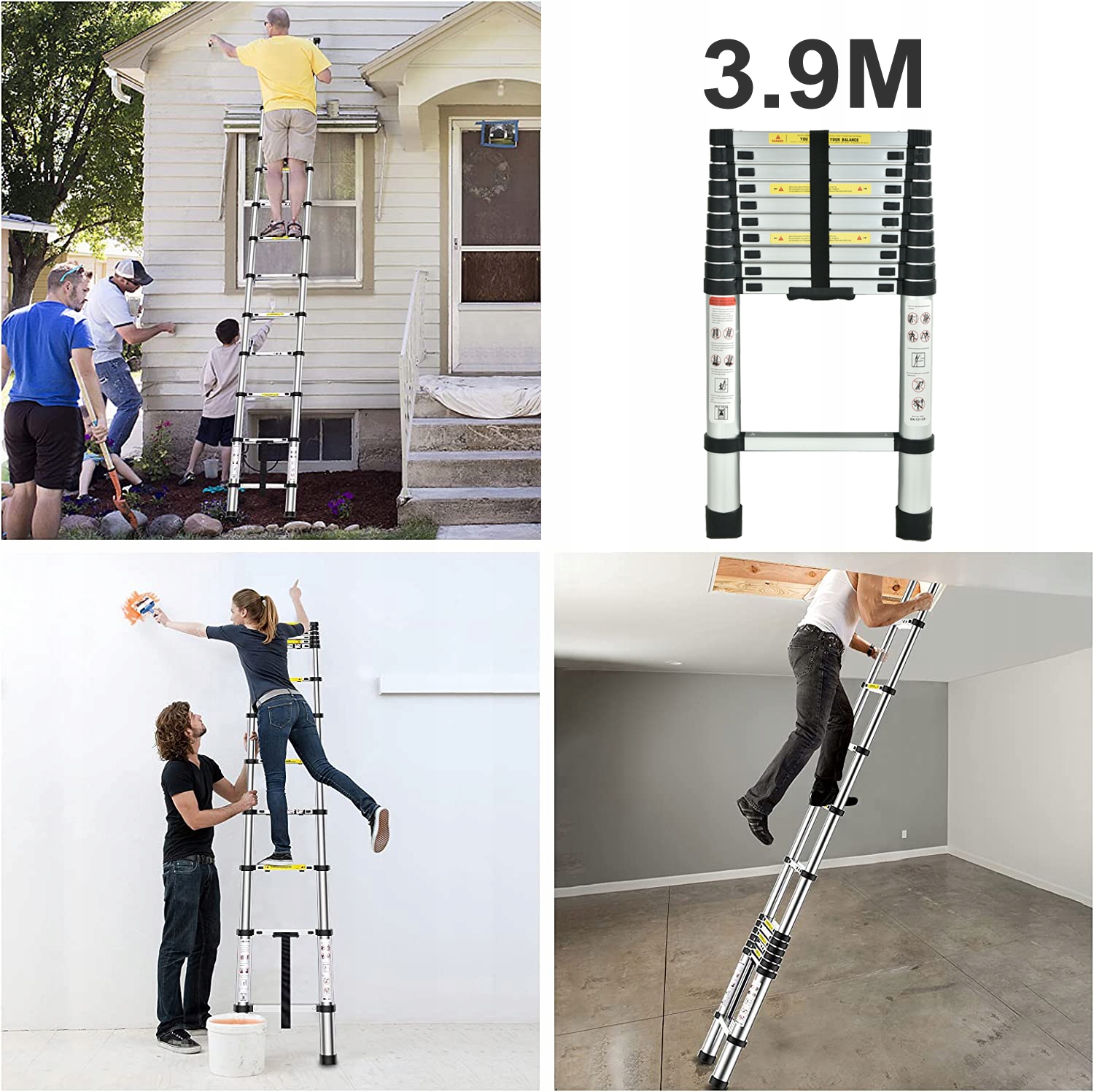 3,9 м Самым большим преимуществом алюминия является его малый вес: он весит всего 9 кг, что упрощает установку. Размер хранения: 93см*47см*8см, фиксированный ремень хорошо удерживает протектор, его легко носить с собой. Эта сторона лестницы складывается, чтобы освободить место, и ее можно легко хранить в узких местах, например, в багажнике автомобиля, в шкафу или под кладовкой. Для тех, кто хочет легко перейти на служебную лестницу и перейти на тип, который можно использовать на работе и дома, выбирайте алюминиевую телескопическую лестницу.