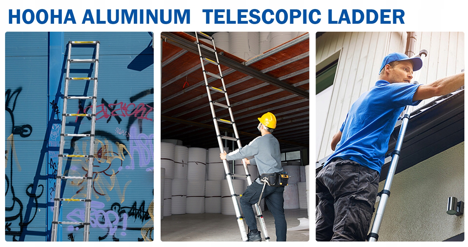 ✔ ✔ ✔ Телескопические лестницы Hooha укоренились в сфере применения лестниц, мы знаем, насколько важна безопасность лестниц для клиентов в процессе применения, что обусловлено требованиями безопасности, в зависимости от продукта, для каждого клиента.