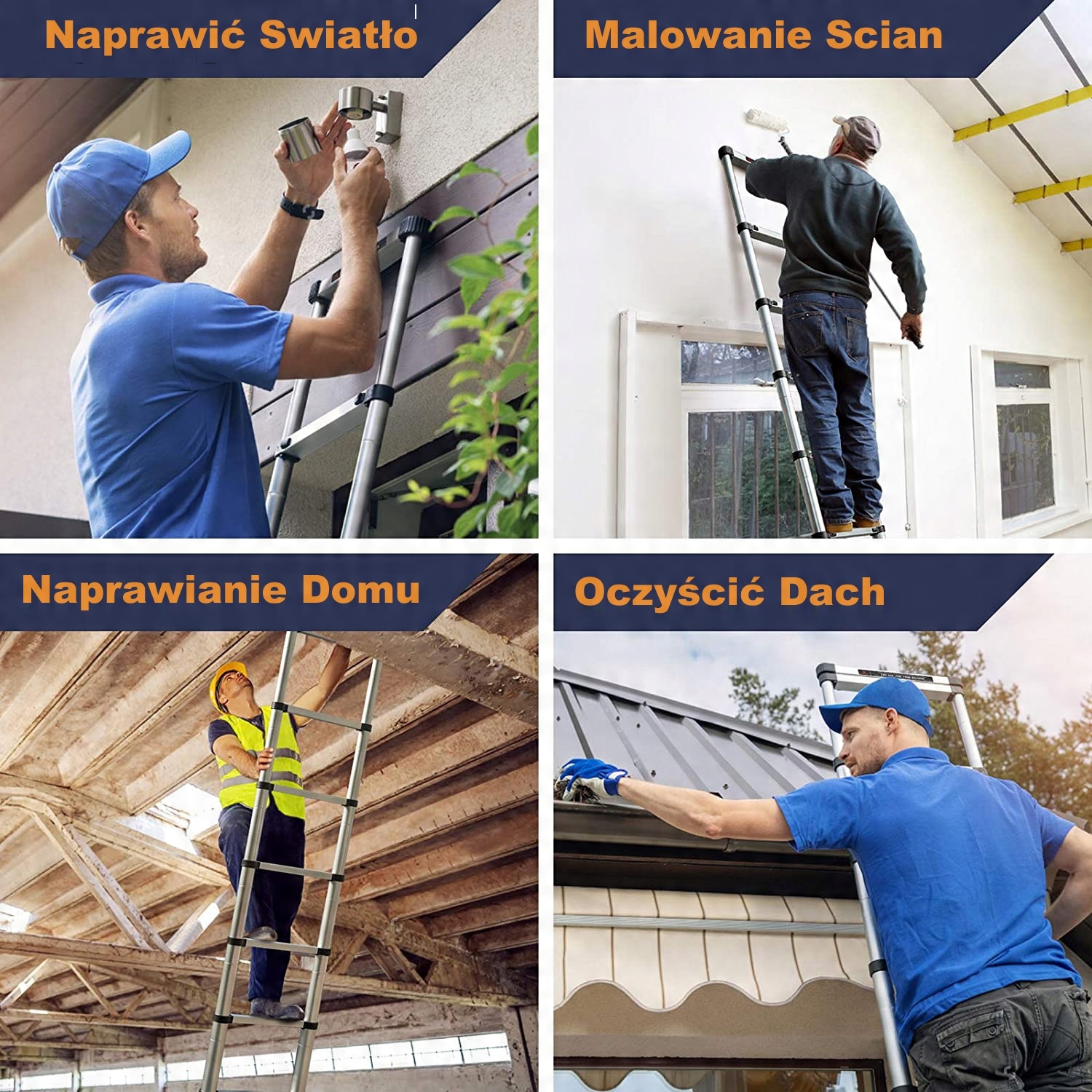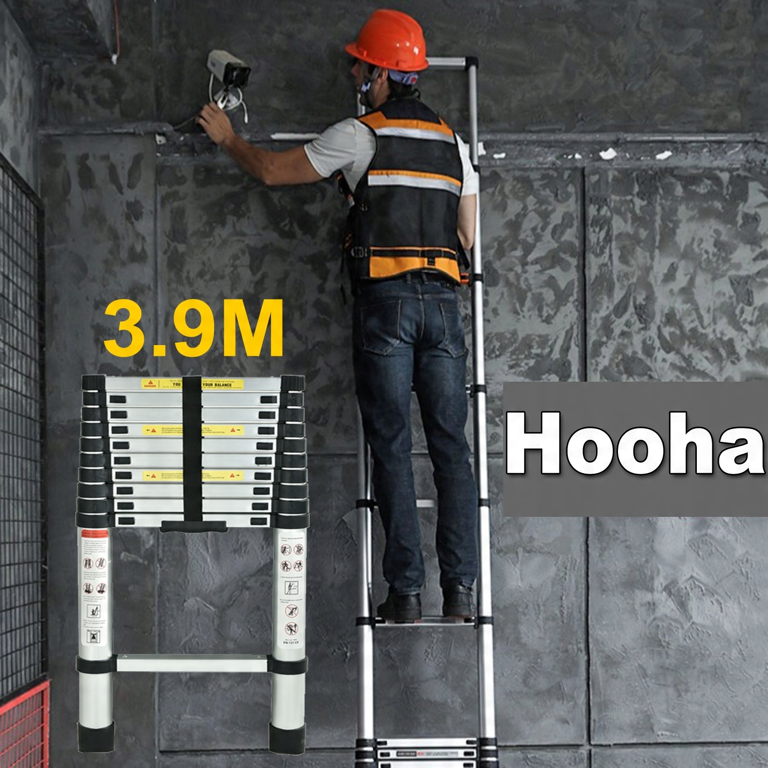 Телескопическая лестница Hooha с противоскользящим резиновым бампером подойдет для любого стиля дома или рабочего места. Отличное применение в различных ситуациях: в помещении - на улице, мытье стен, мытье окон, чистка крыши, демонтаж фасада, мойка автомобилей, монтаж строительных лесов, замена лампочек и т.д.