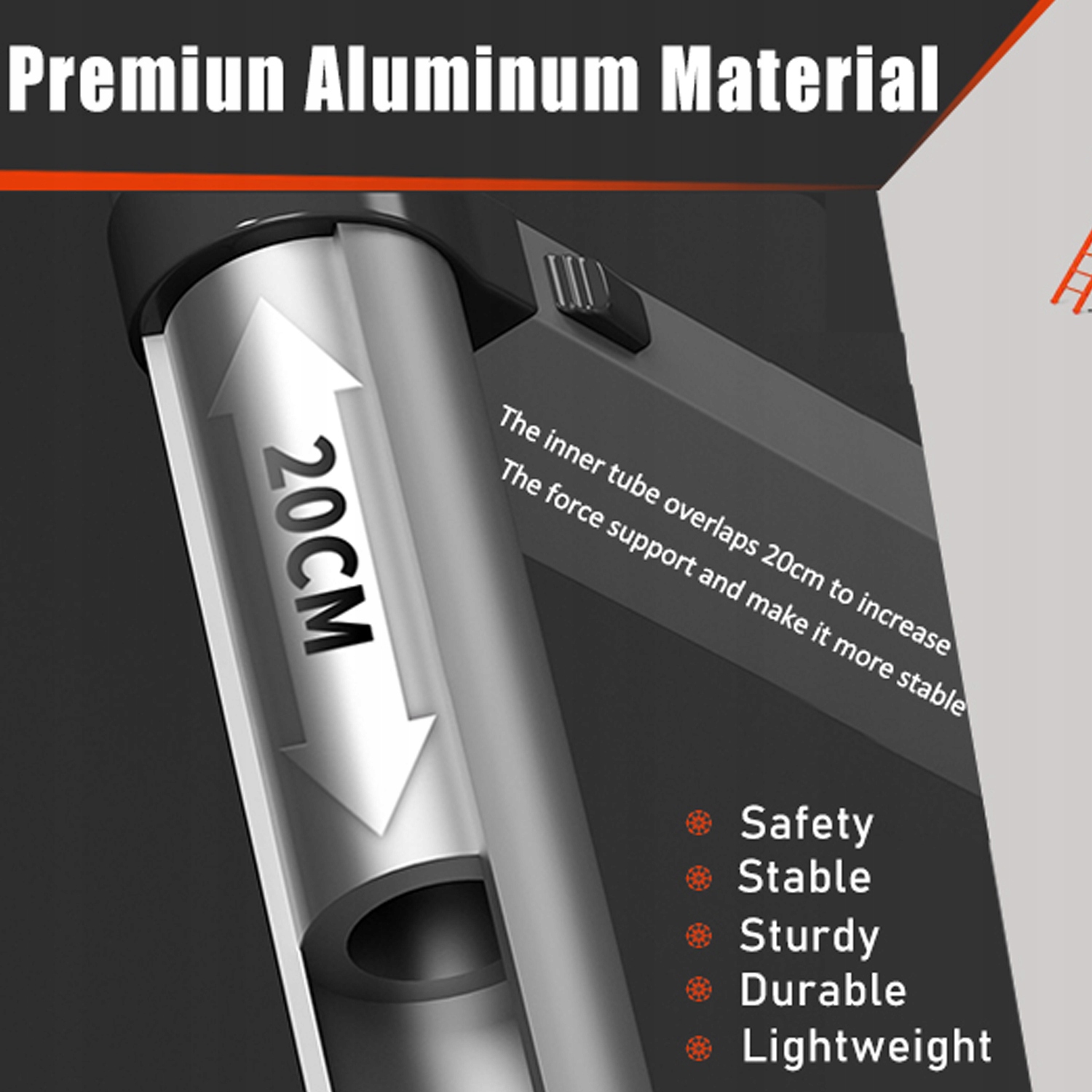 ②Телескопическая лестница изготовлена из алюминия, имеет промышленную высоту и наконечник из твердой резины, имеет сертификат безопасности EN131.