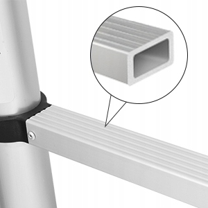 2)Алюминиевая телескопическая лестница премиум-класса с А-образной рамой выдерживает критическую нагрузку, прочна и устойчива к разрушению.