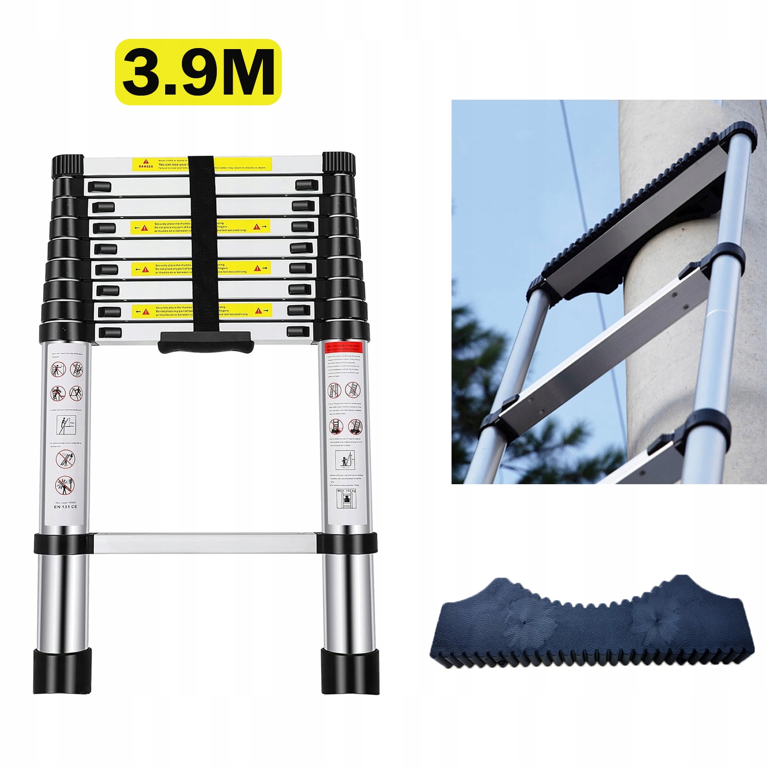 DRABINA TELESKOPOWA PRZYSTAWNA 3.9M ALUMINIOWA WZMACNIANA ANTYPOŚLIZGOWY
