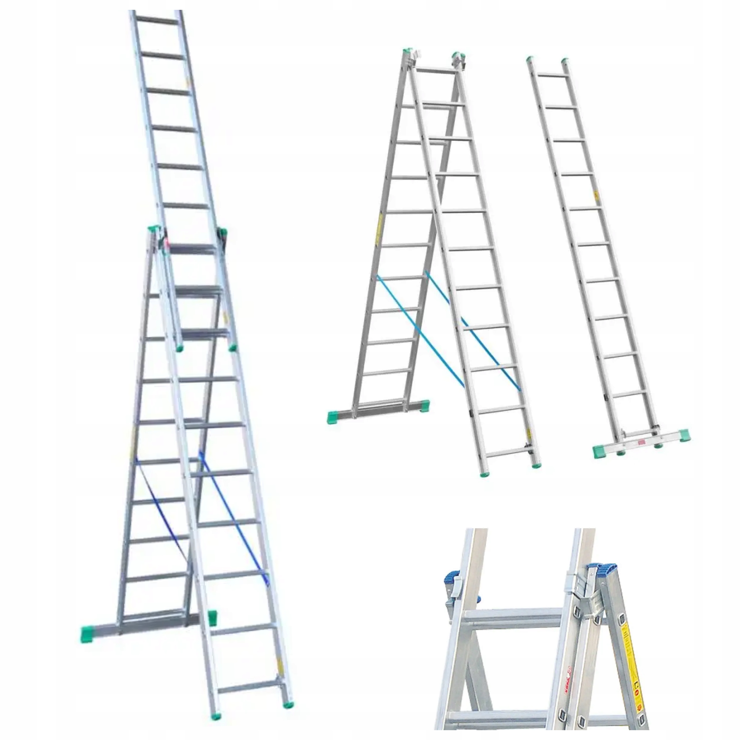 ЛЕСТНИЦА УНИВЕРСАЛЬНАЯ АЛЮМИНИЕВАЯ 3х10 СТУПЕНЕЙ ДЛЯ ЛЕСТНИЦ DRABEX 150КГ