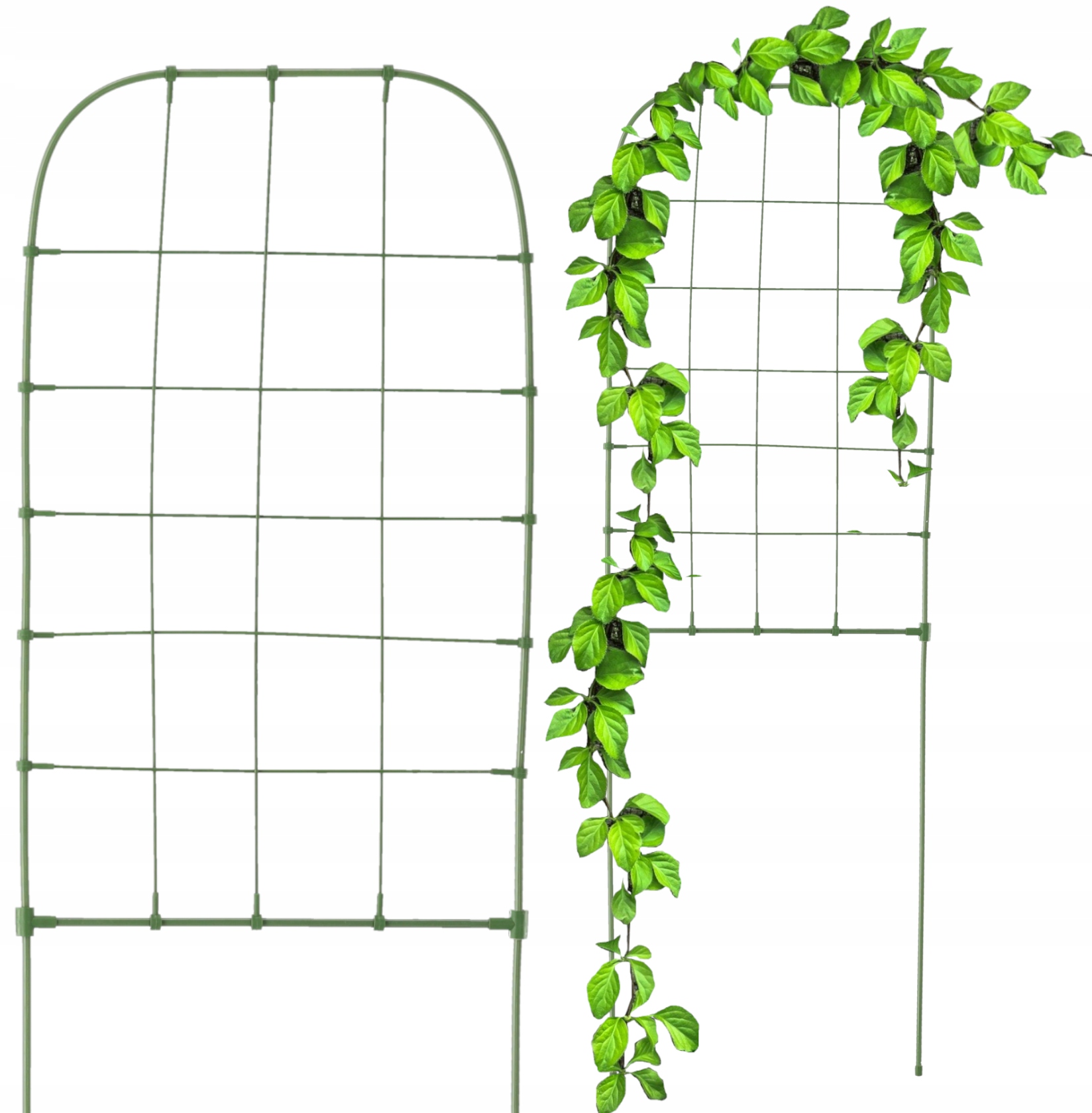 Опора изготовлена из прочной стали, покрытой темно-зеленым пластиком. Опора устойчива к погодным условиям. Он не боится УФ-излучения, дождя и снега. Он защитит ваши растения и украсит ваш сад или террасу.
