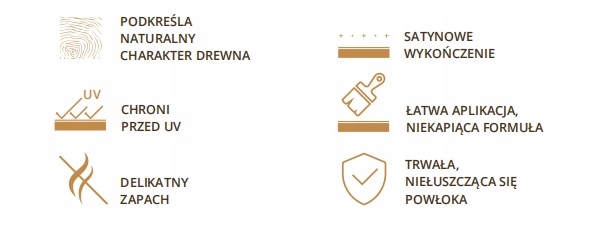 Дарит сатиновое покрытие, защищающее древесину от воздействия атмосферных факторов. типичный для польского климата (мороз, влага и ультрафиолет). Благодаря быстросохнущей формуле первый слой становится сухим на ощупь уже через 20 минут, а через 2 часа остается на окрашенной поверхности даже при изменении погодных условий (в том числе при дожде).