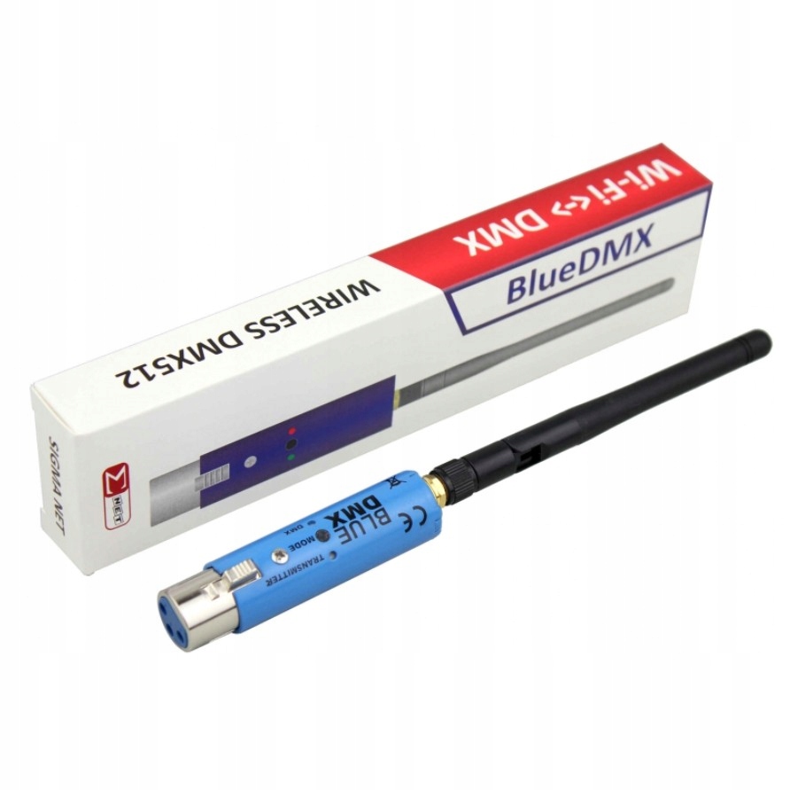 BlueDMX позволяет передавать сигнал DMX по радио с помощью Wi-Fi. 2 сети, 4 ГГц. Радиопередача зашифрована и содержит механизм контроля ошибок, позволяющий корректно работать в сложных условиях. BlueDMX может работать как передатчик или приемник. В одной группе может работать один передатчик и макс. восемь приемников. Пользователь может выбрать один из 7 каналов, на которых будут работать устройства из одной группы, не мешая устройствам из других групп, работающим на других каналах. BlueDMX поддерживает протокол Art-Net и может быть напрямую подключен к другим консолям или приложениям, совместимым с Art-Net.