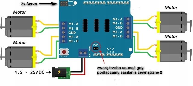 - Экран позволяет подключить дополнительное питание. питания, таким образом отделяя питание двигателя от питания логики.