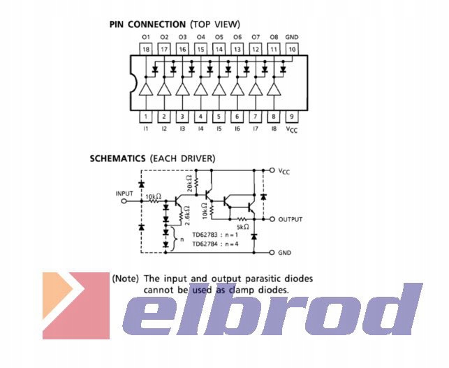 <р> TD62783 8xинтегральная схема Дарлингтона <р> 50 В, 0,5 А <р> Корпус ДИП 18 <р> Драйвер питания является идеальным решением в микропроцессорных системах для управления большим количеством светодиодов, шаговых двигателей, реле и т. д. <р>