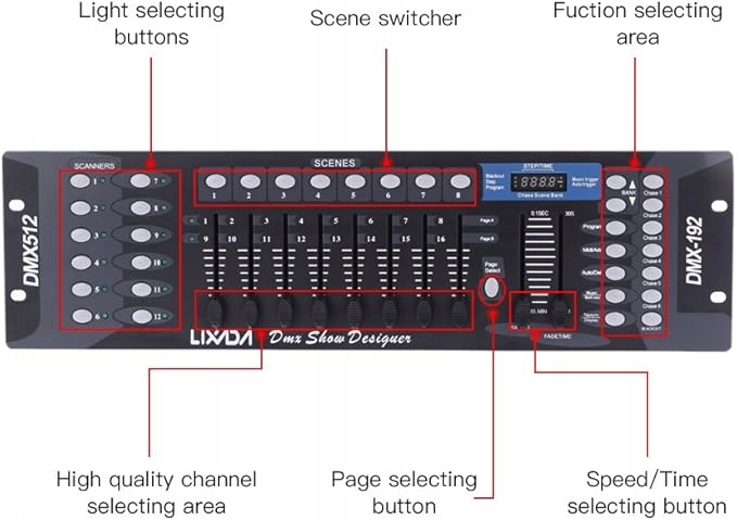 Lixada DMX-512 Консоль контроллера, 192 DJ-каналы, контроллер, 240 сцен