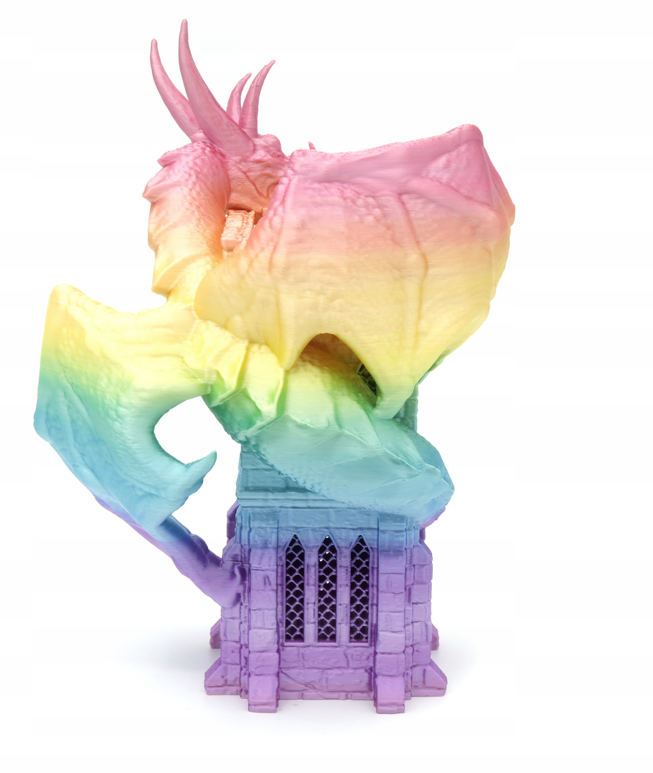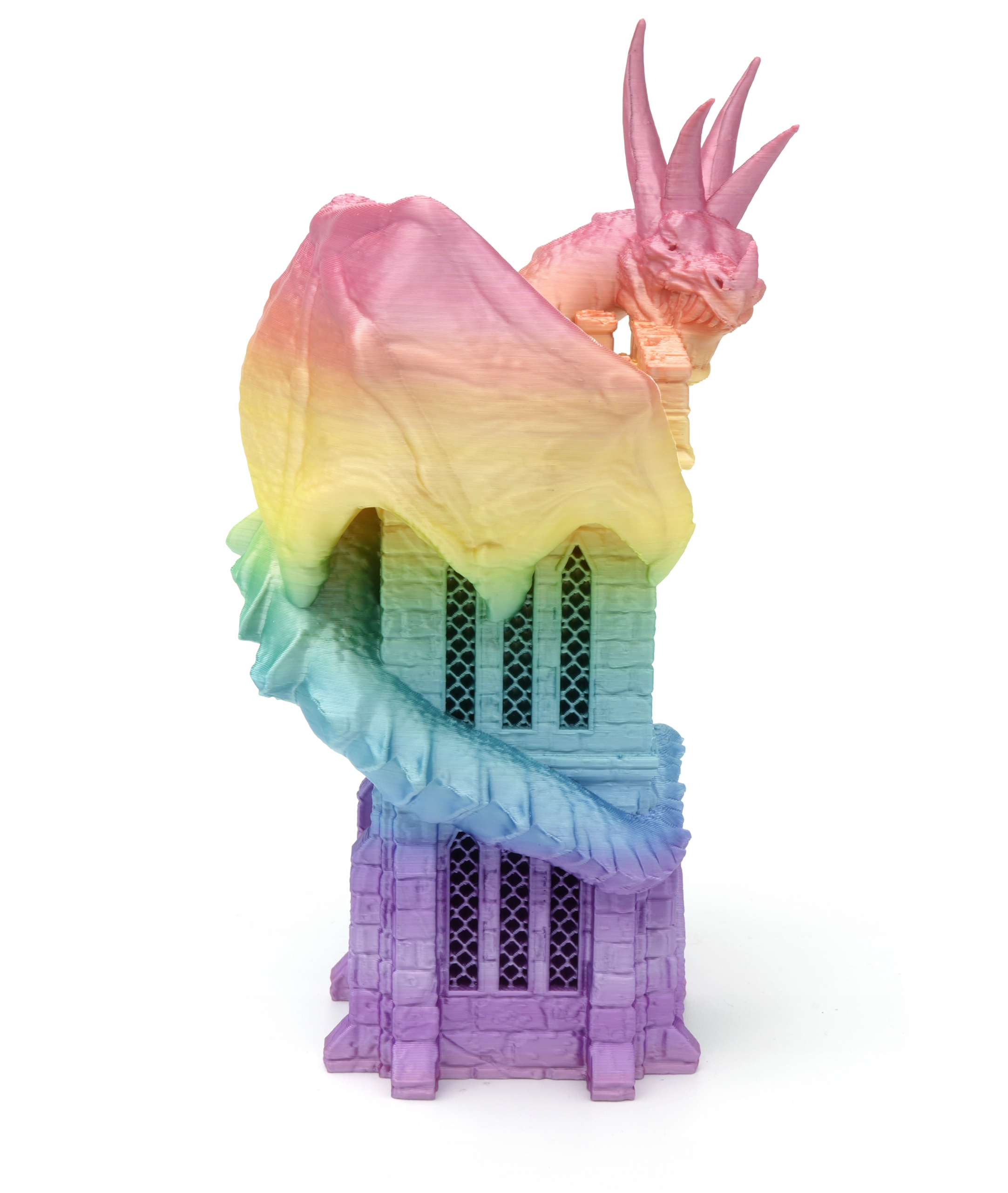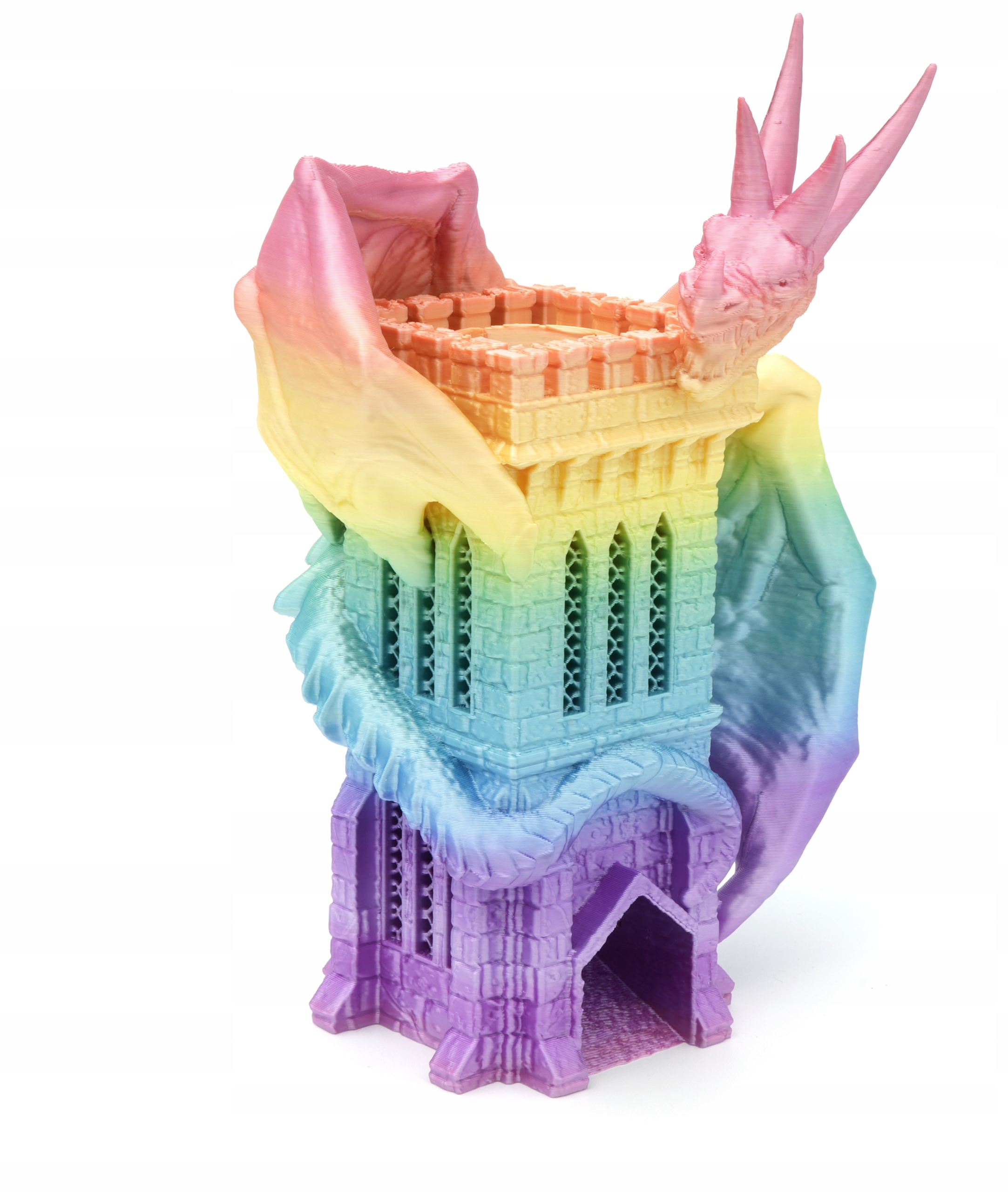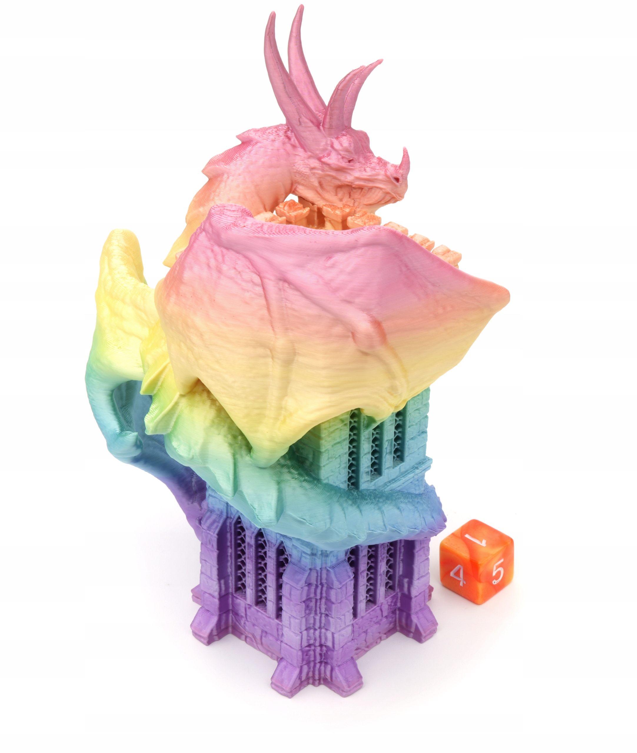 Дизайн башни представляет дракона, поднимающегося на башню, что делает его не только функциональным, но и эстетическим дополнением к вашему столу.