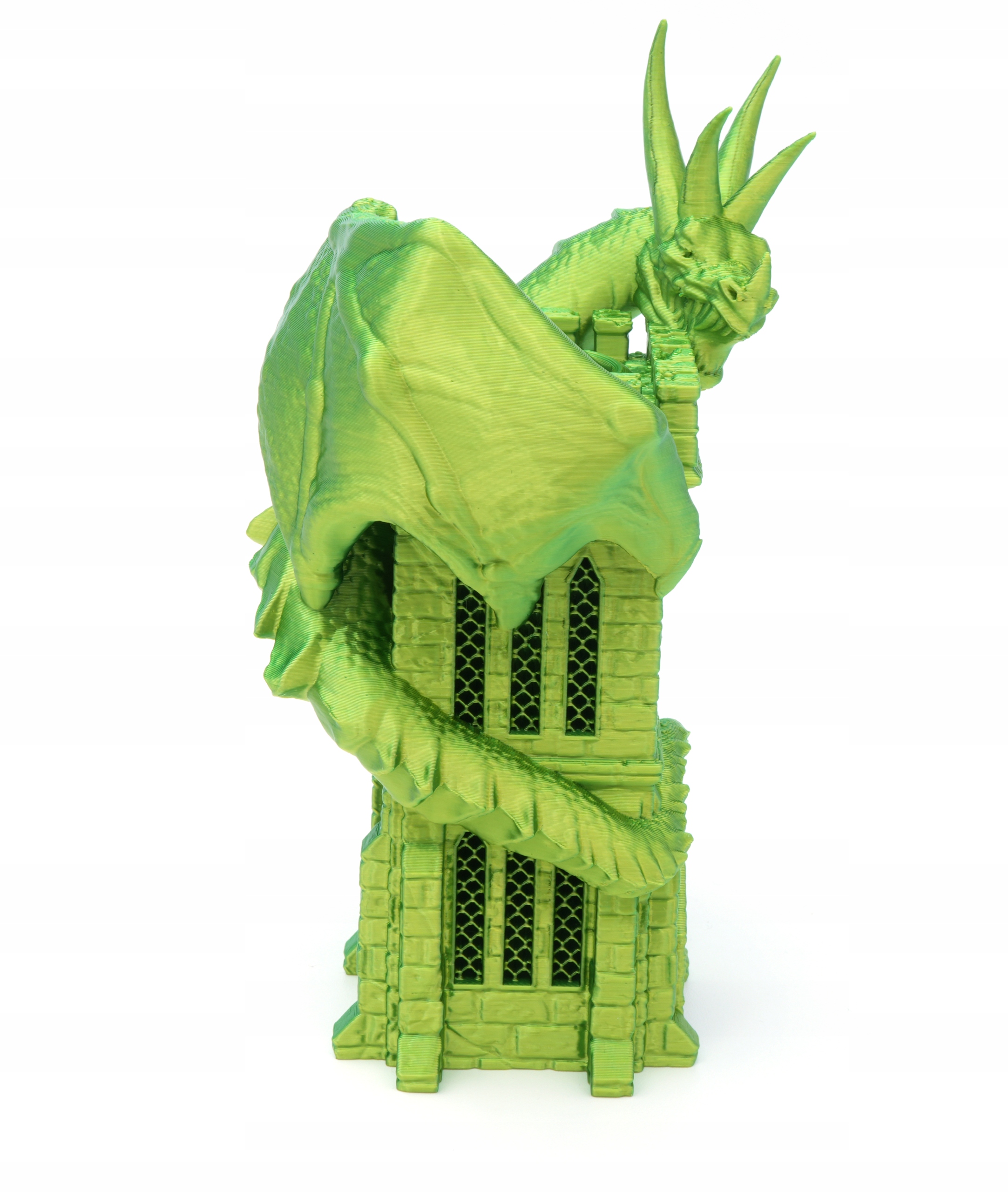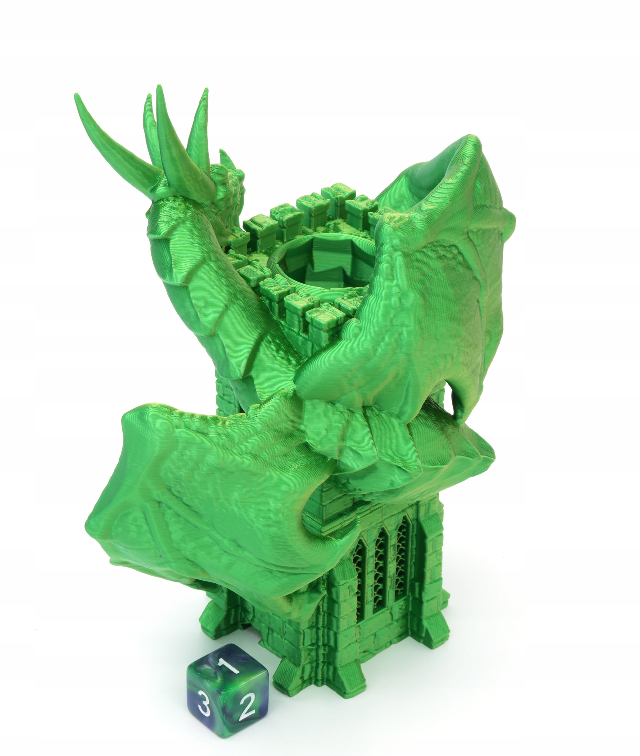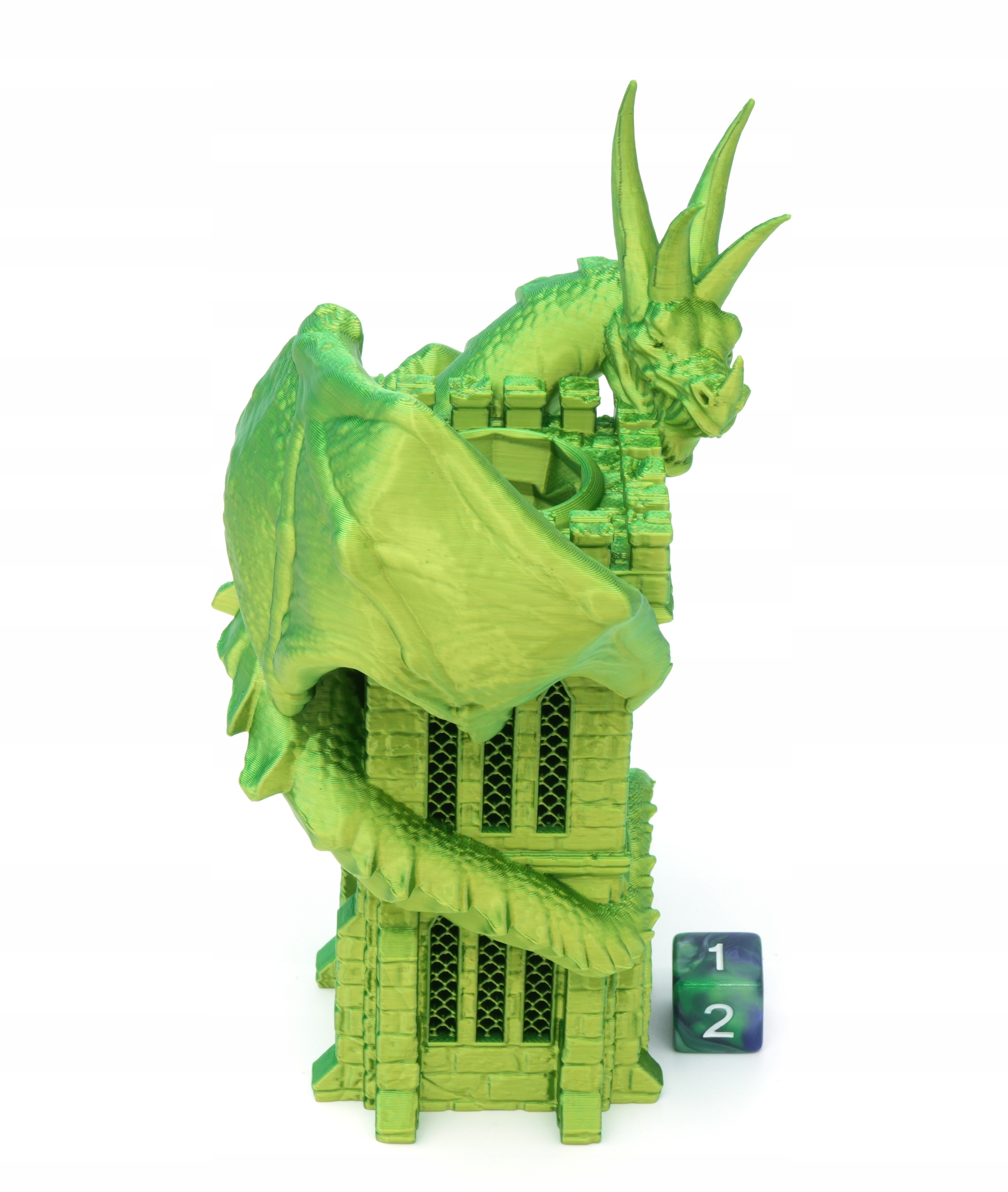 Дизайн башни представляет дракона, поднимающегося на башню, что делает его не только функциональным, но и эстетическим дополнением к вашему столу.
