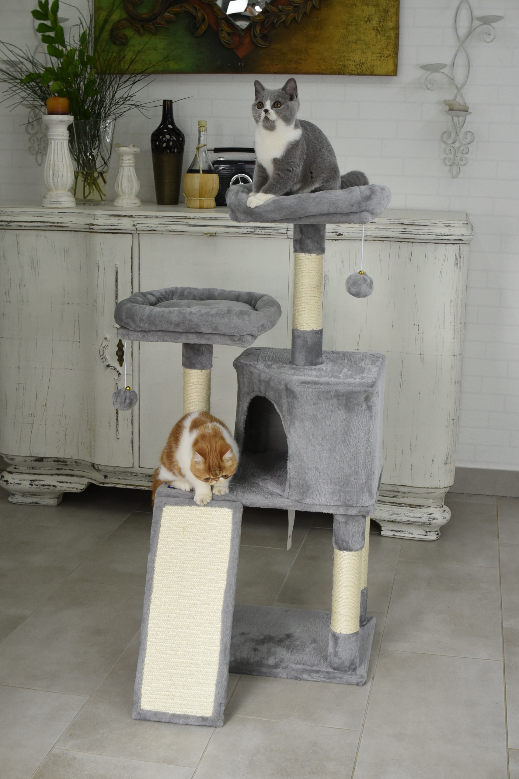 Drapak dla kota domek wieża legowisko 2 poduszki mata do drapania piłeczki