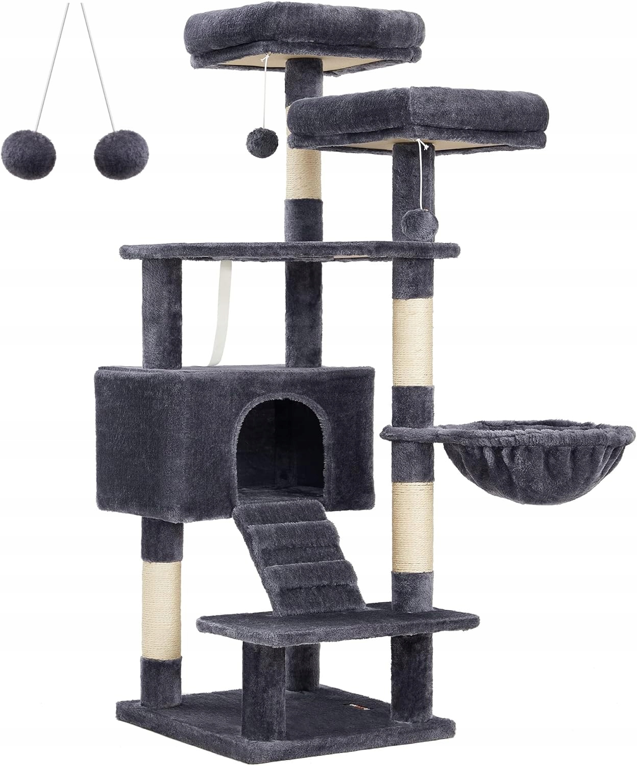 Многофункциональный отдых для домашних животных вашей кошки - это высокая царапина, которая состоит из разных высот твердых оснований, широких столбов и кроватей. Таким образом, он будет использоваться не только для различных акробатических трюков, но и в качестве поддержки лазания или отдыха. Благодаря этому набор также подходит для большего числа любимых ваших кошек, которые могут играть вместе или отдыхать одновременно