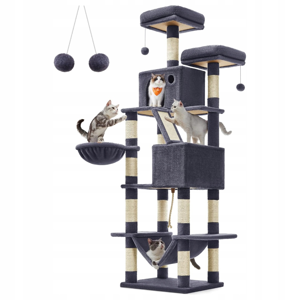 Дерево кошки содержит 2 сквозных платформ, 2 уютных пещер, 1 пушистая корзина, 2 плюшевые шарики и 1 гамак -каждая кошка найдет свое любимое место на этой многосторной царапине. Отличный выбор для домохозяйств со многими кошками.