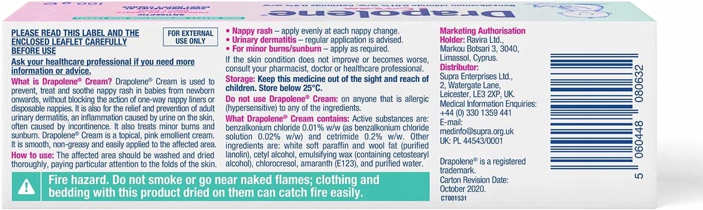 Формула крема Drapolene 4 в 1 предотвращает и лечит опрелости. Успокаивает кожу и создает защитный барьер от внешних раздражителей. Крем Drapolene представляет собой нежирный антисептический смягчающий крем. Он достаточно мягок и подходит для новорожденных. Всегда читайте этикетку на английском языке.