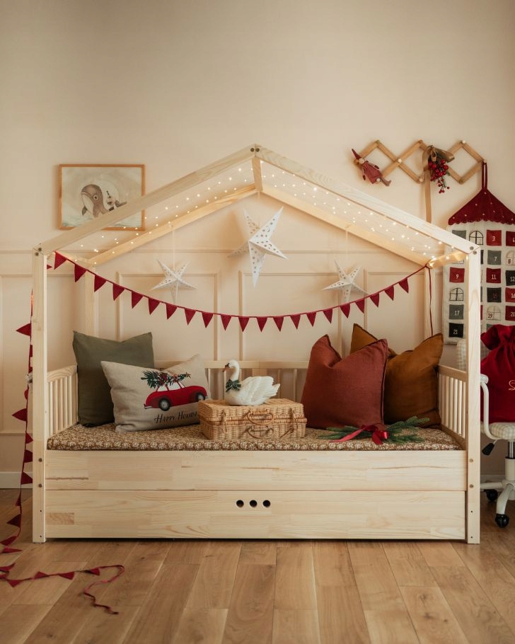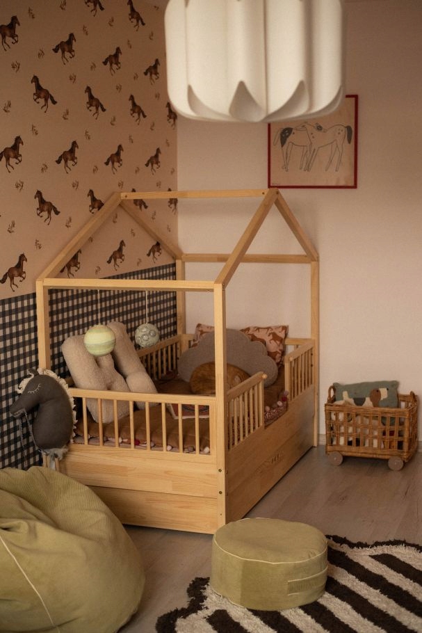 Безопасный сон на полу в духе Монтессори – кроватка на уровне пола обеспечивает легкий доступ и максимальную безопасность для самых маленьких. Дети могут начинать использовать этот раствор примерно с 18-месячного возраста, при условии, что это позволяет их развитие. Такая конструкция поддерживает их независимость и самостоятельность.