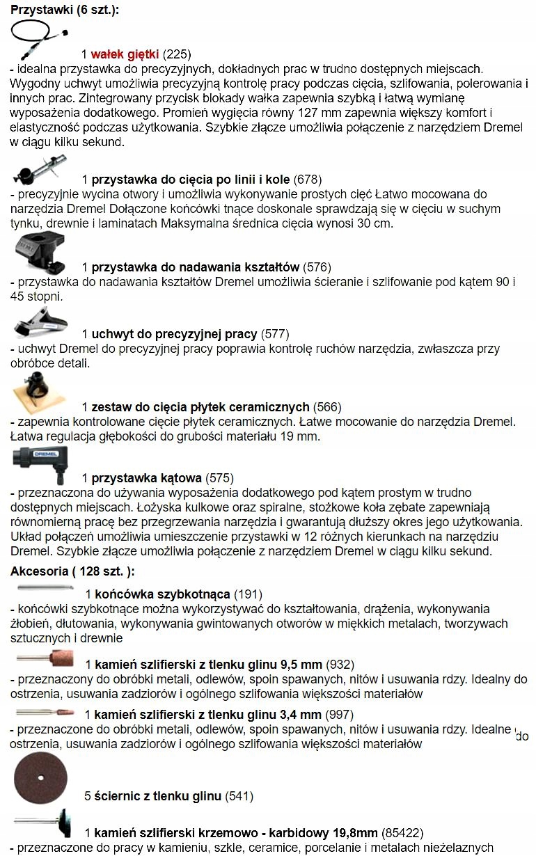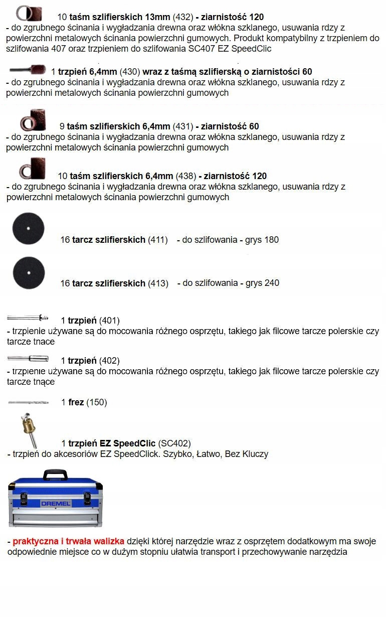 - 128 высококачественных насадок DREMEL (включая EZ SpeedClic)