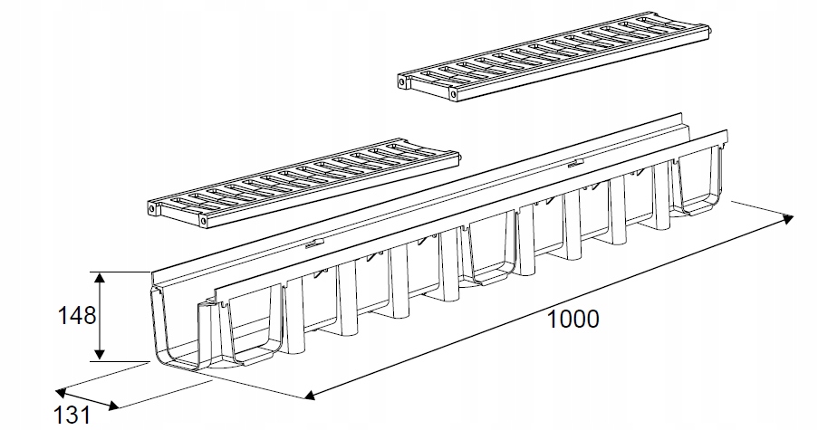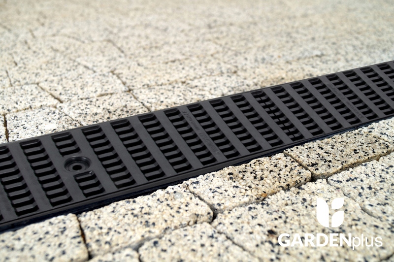 Линейный водосток для отвода воды общей высотой 148 мм изготовлен из материала с решеткой класса прочности В125 (до 12,5 тонн).
