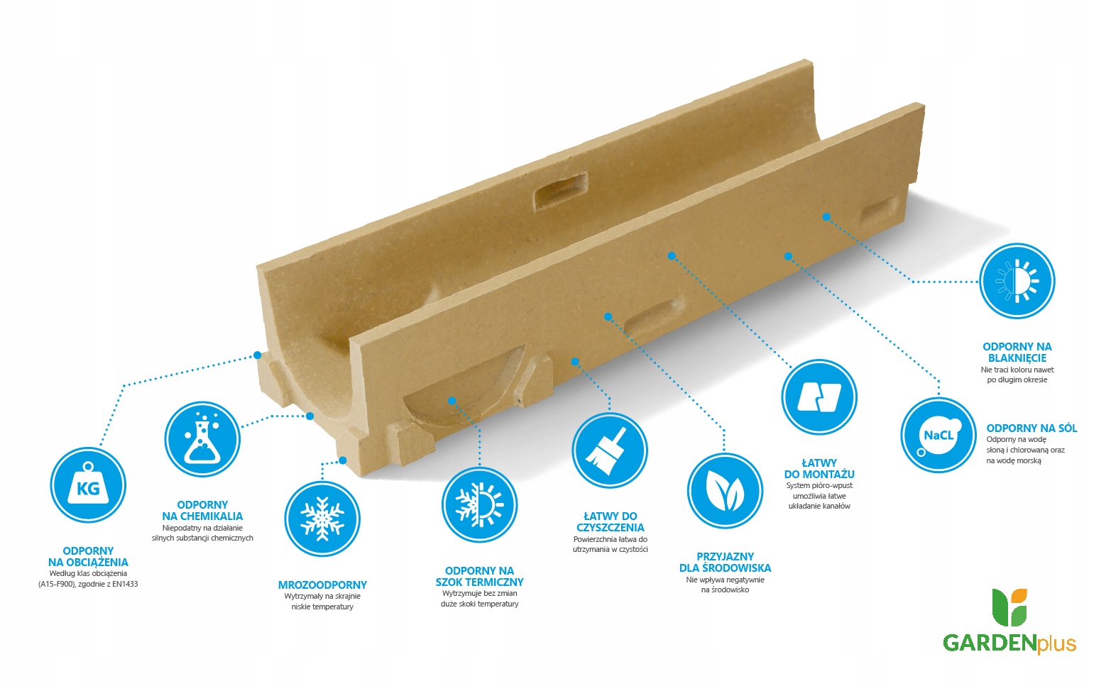 - Полимерный бетон имеет очень прочную структуру, которая химически и механически намного лучше обычного бетона. Таким образом, мы можем изготавливать каналы с относительно более тонкими стенками, что делает канал легче. Монтировать каналы из полимербетона гораздо проще и намного быстрее, поскольку не требует применения тяжелой техники.