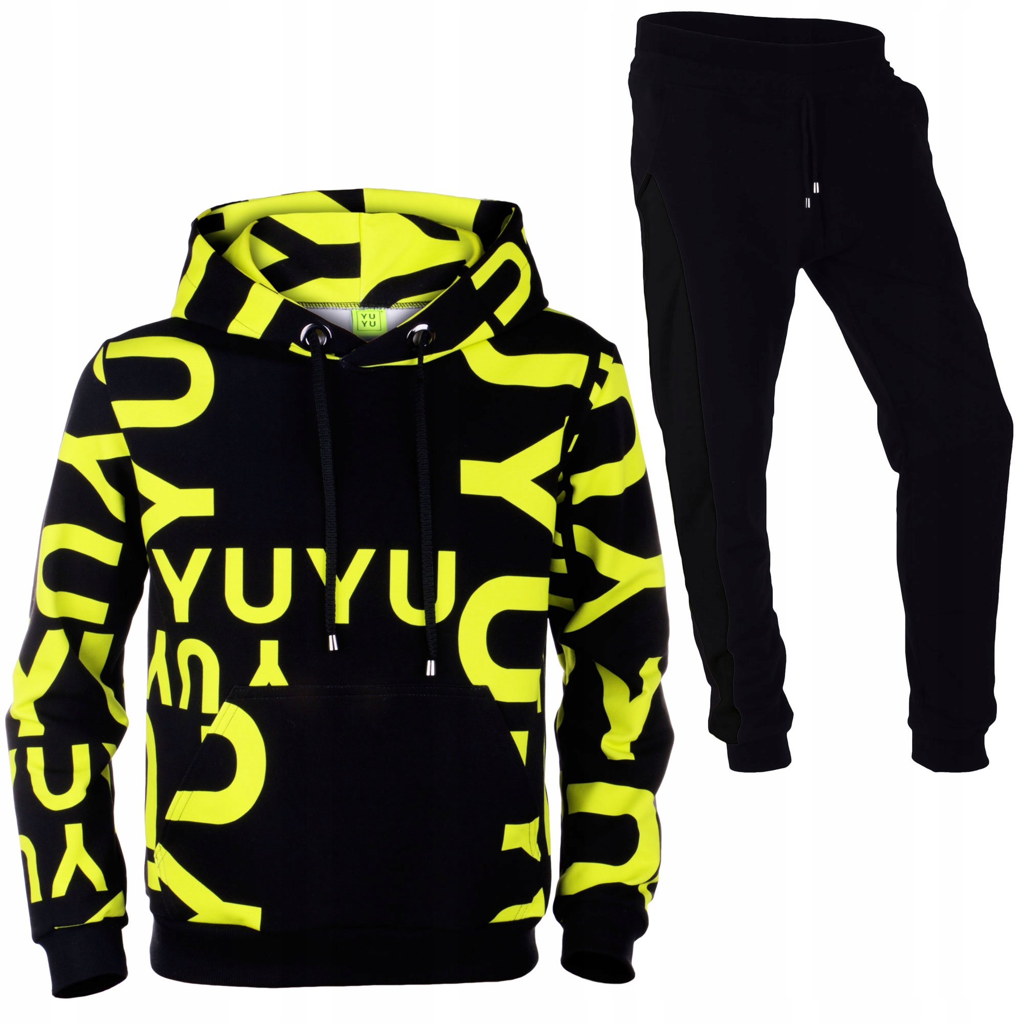 СПОРТИВНИЙ КОСТЮМ КЕНГУРУ СВІТШОТ YUYU HOOD ЧОРНО-ЖОВТИЙ + ЧОРНІ ШТАНИ STRING 170