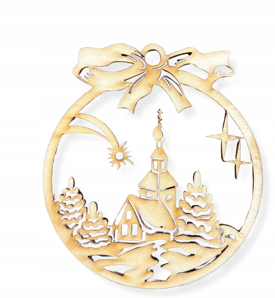DREWNIANA BOMBKA ŚWIĄTECZNA KOŚCIÓŁ ZIMA ZAWIESZKA NA CHOINKĘ 10CM