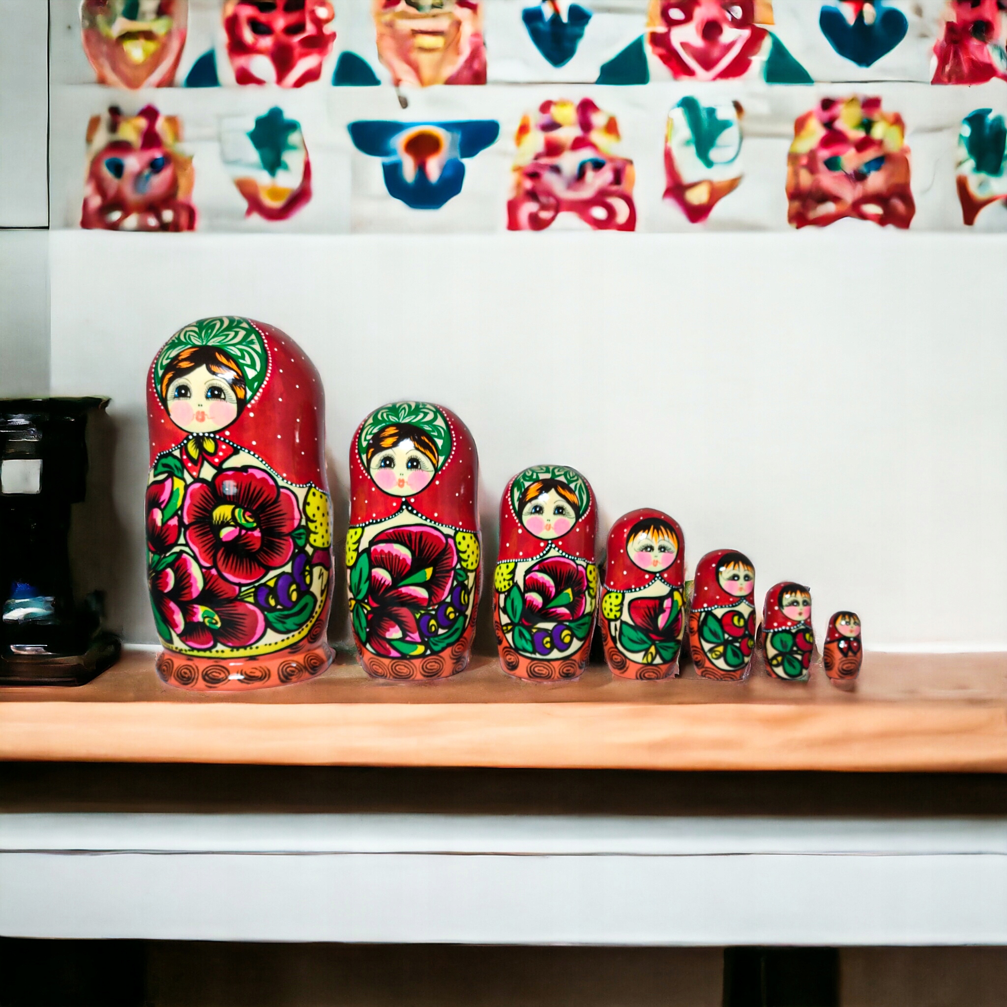 Drewniana Lalka MATRIOSZKA BABUSZKA 7w1 20 cm recznie malowana chusta