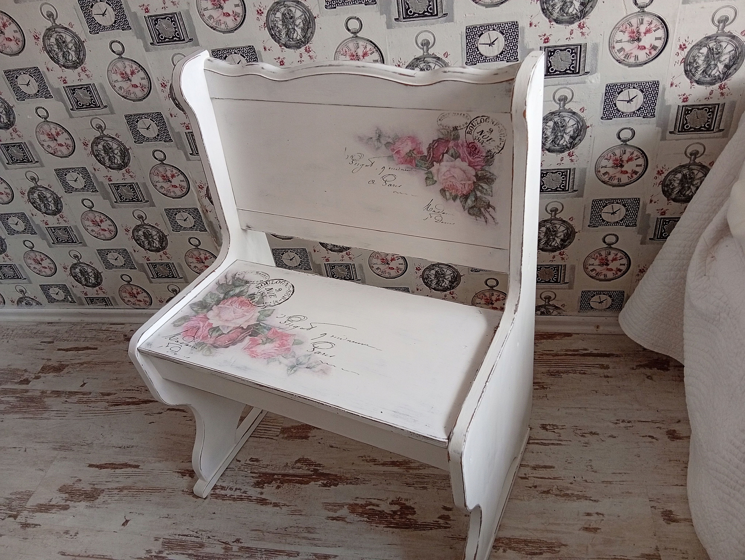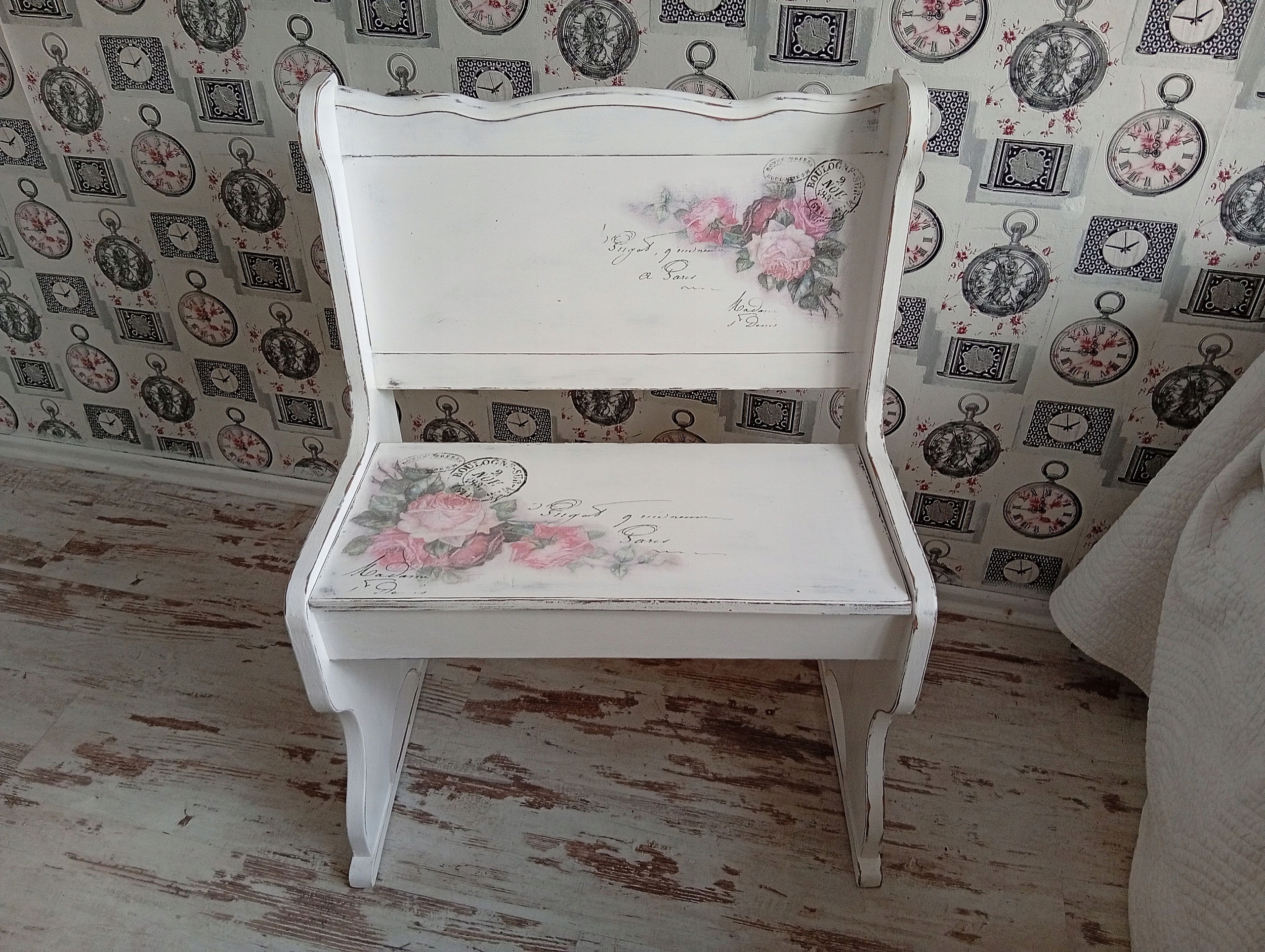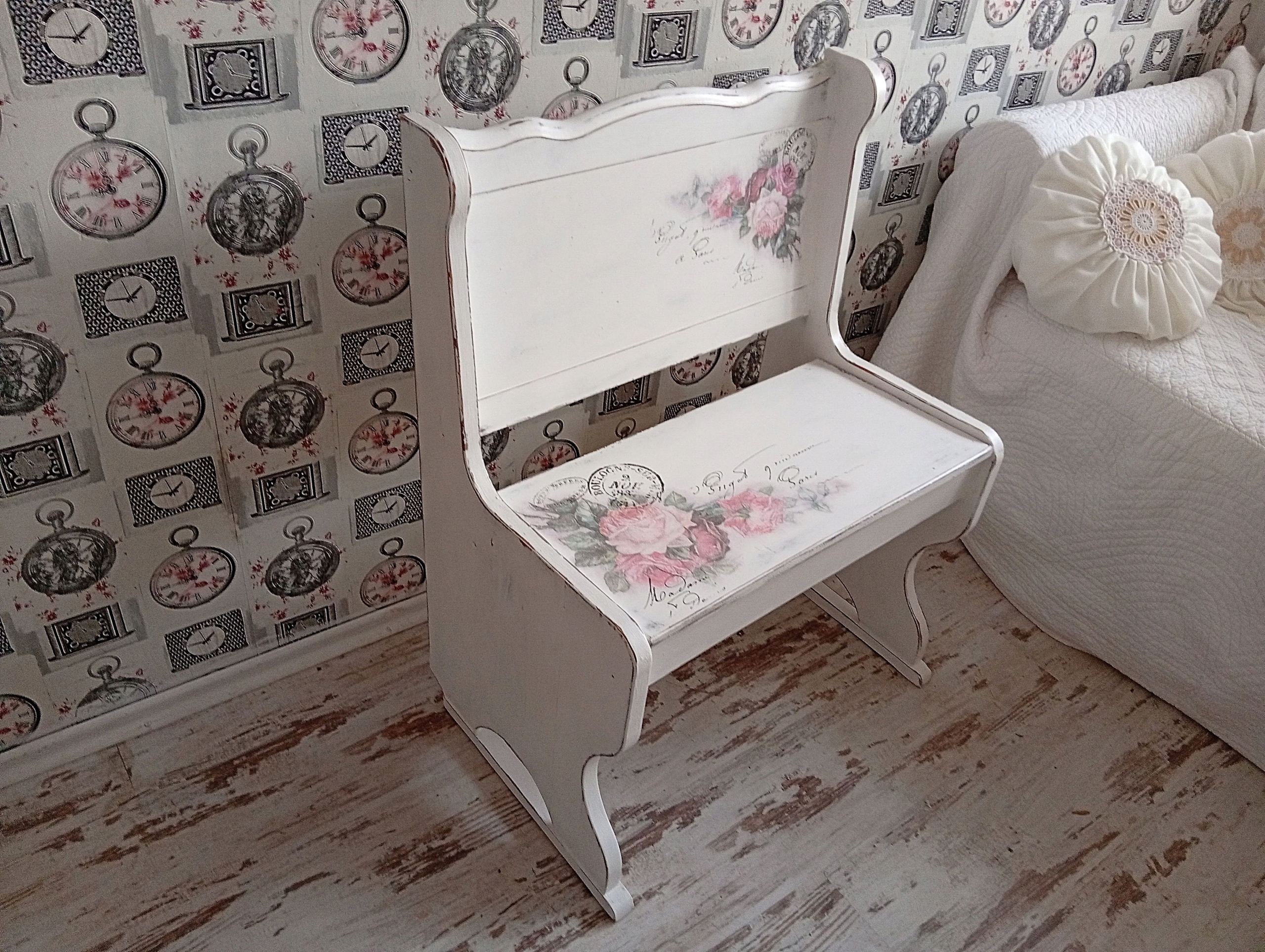 РАСКРАШЕННАЯ ДЕРЕВЯННАЯ СКАМЬЯ С РОЗАМИ ДЛЯ ХРАНЕНИЯ