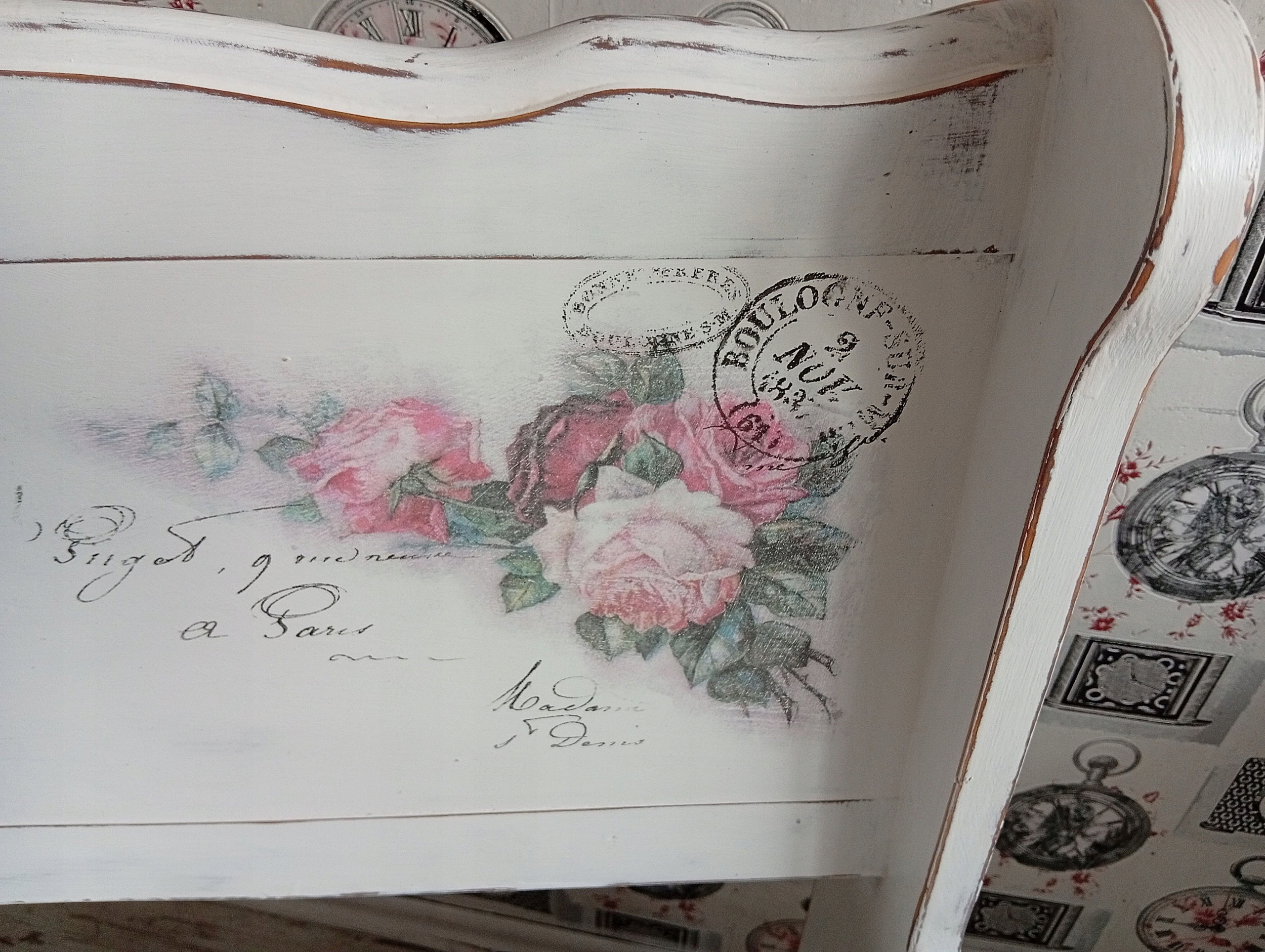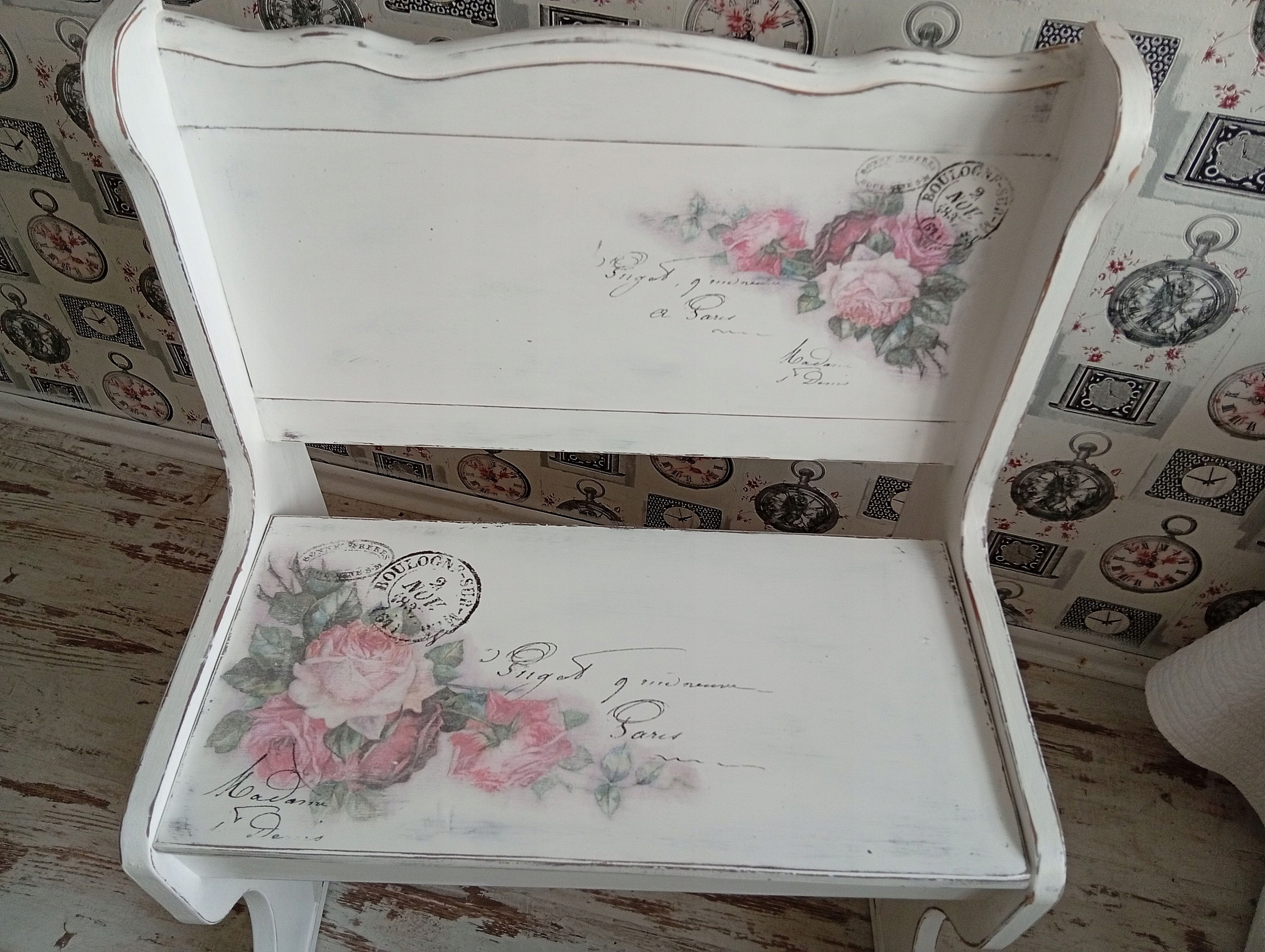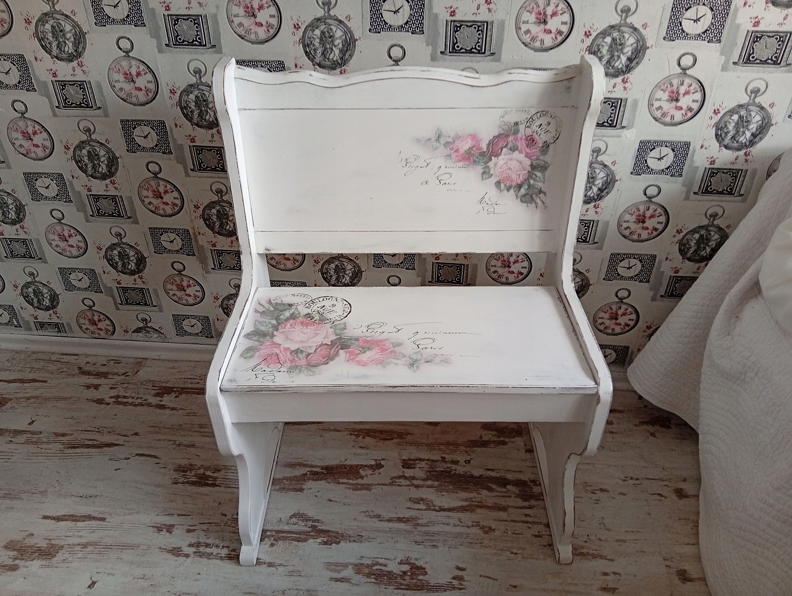 РАСКРАШЕННАЯ ДЕРЕВЯННАЯ СКАМЬЯ С РОЗАМИ ДЛЯ ХРАНЕНИЯ