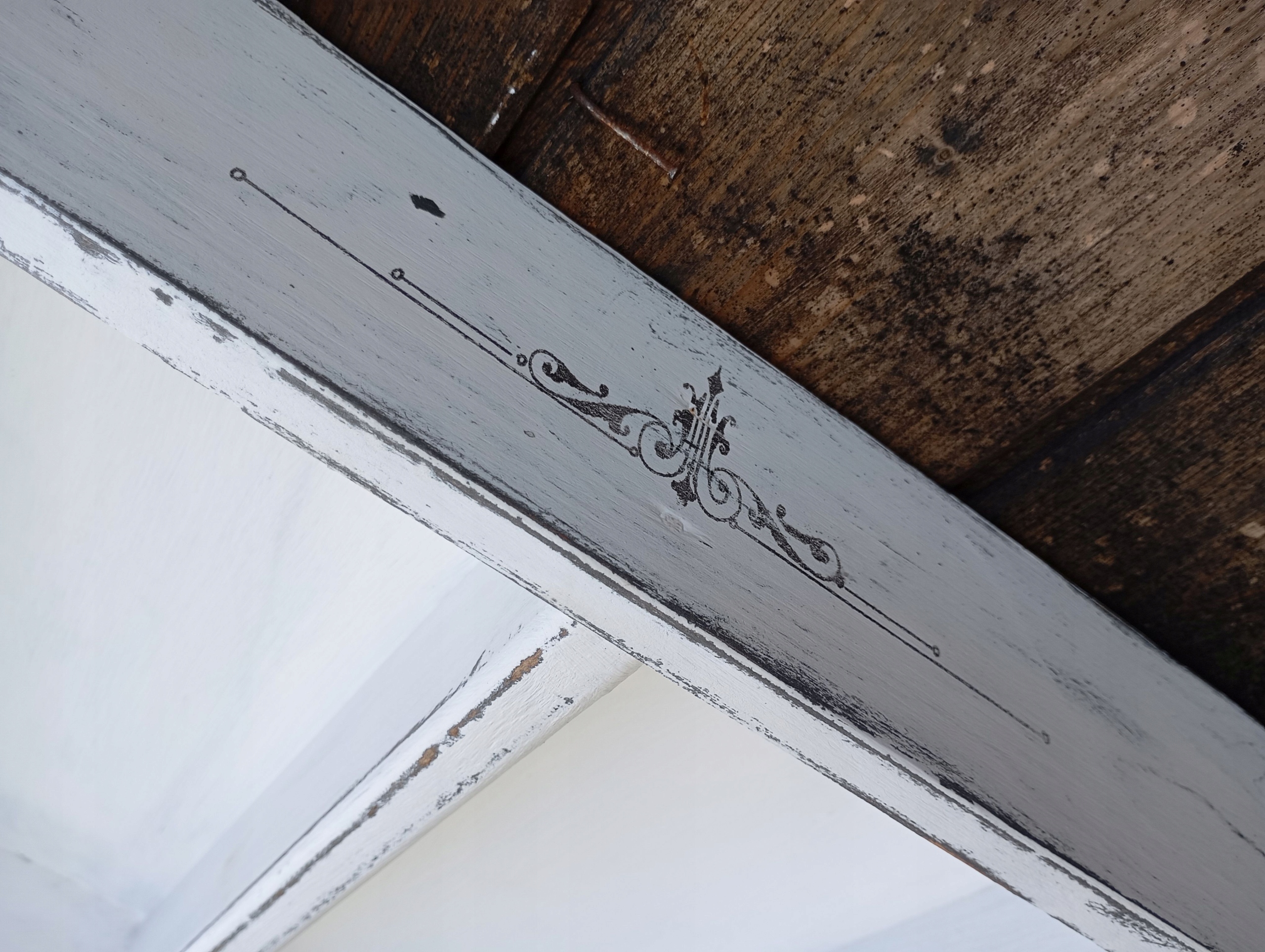 Окрашено в белый цвет, состарено, намеренно состарено.