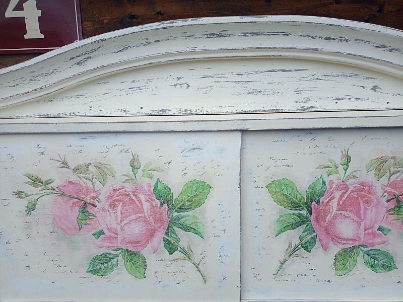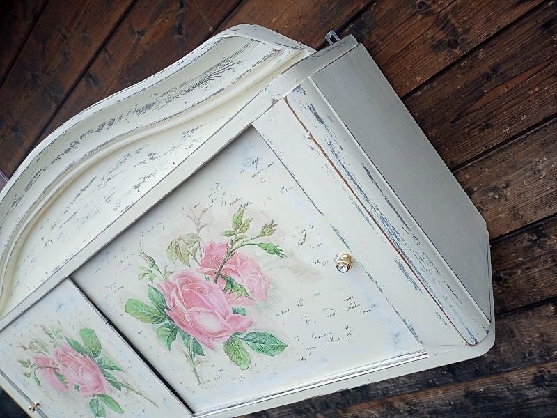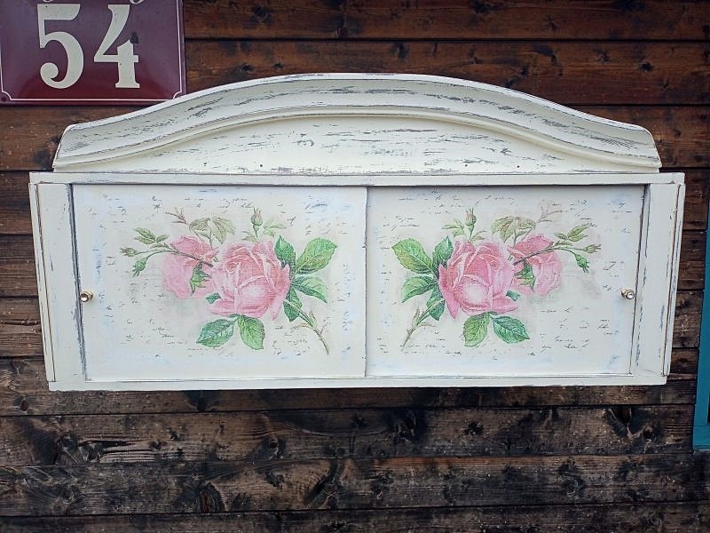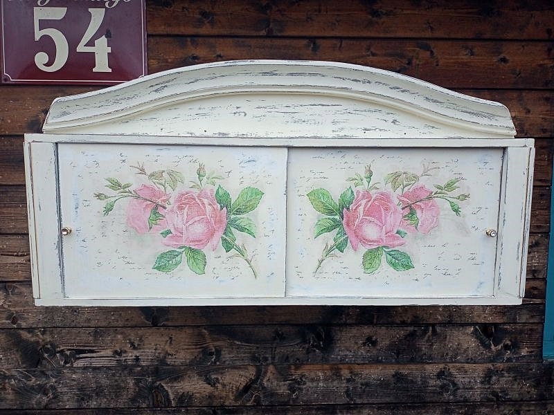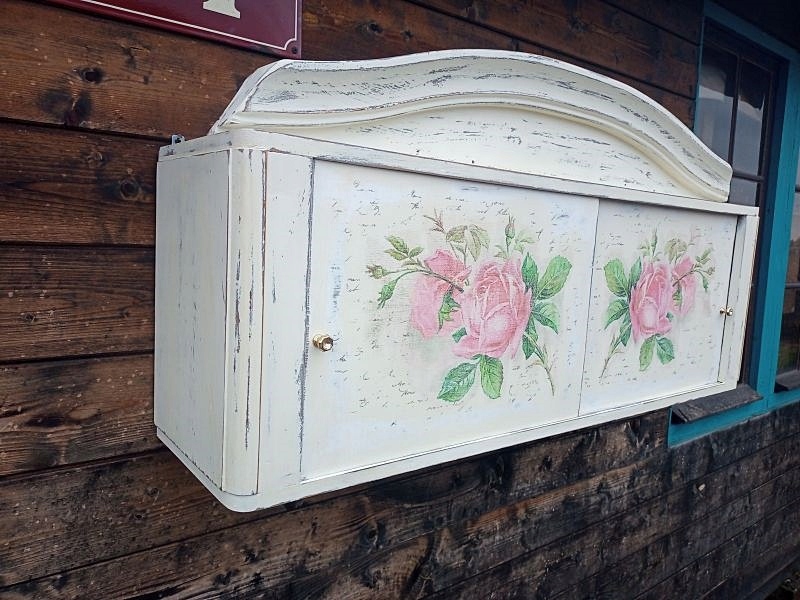 DREWNIANA MALOWANA SZAFKA WISZĄCA, RÓŻE SHABBY CHIC