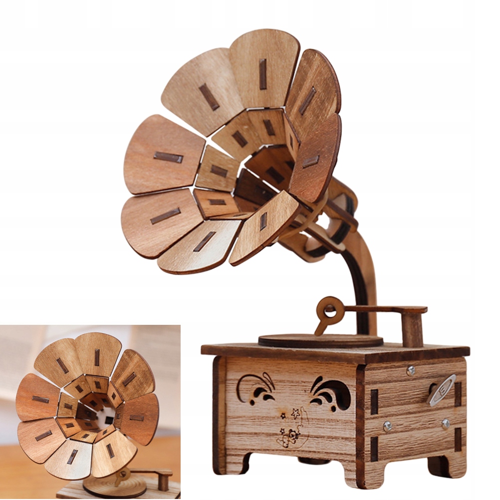 DREWNIANA MUZYKALNA SKRZYNKA RETRO HANDLOWA