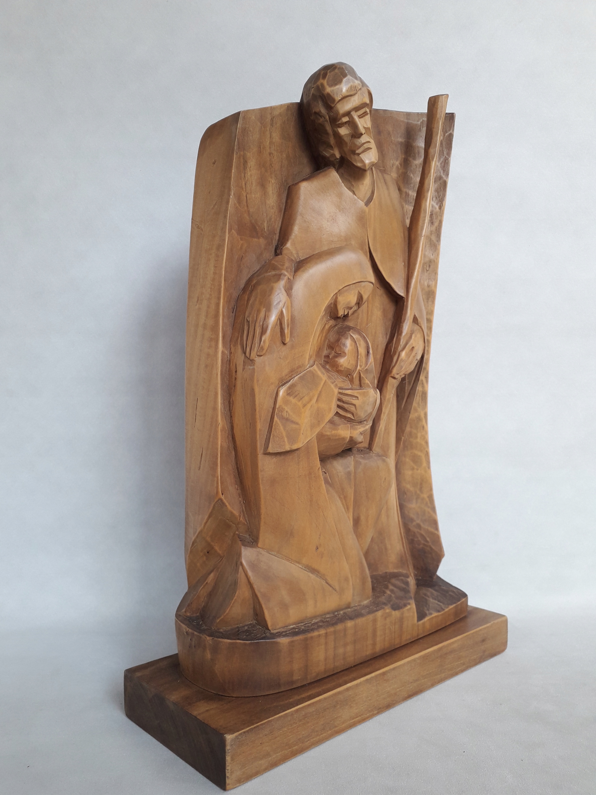 DREWNIANA PŁASKORZEŹBA FIGURA ŚWIĘTA RODZINA