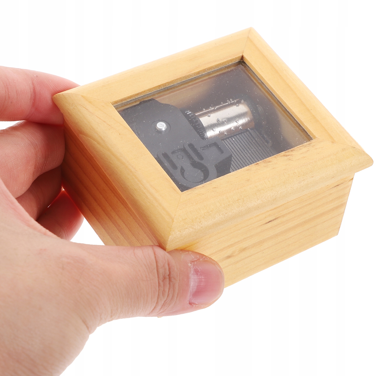 DREWNIANA SKRZYNECZKA MUZYCZNA Z KORBKĄ DEKORACYJNA
