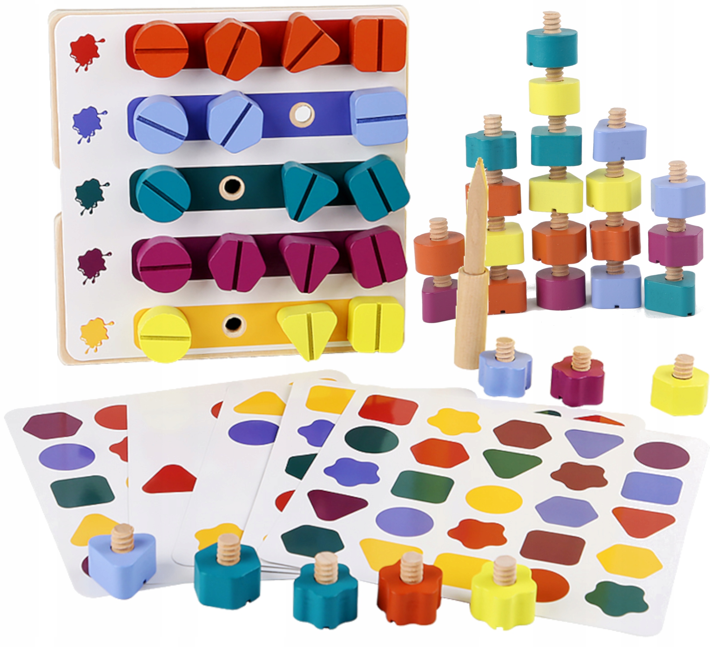 DREWNIANA UKŁADANKA ŚRUBKI DO WKRĘCANIA WKRĘTY 3D