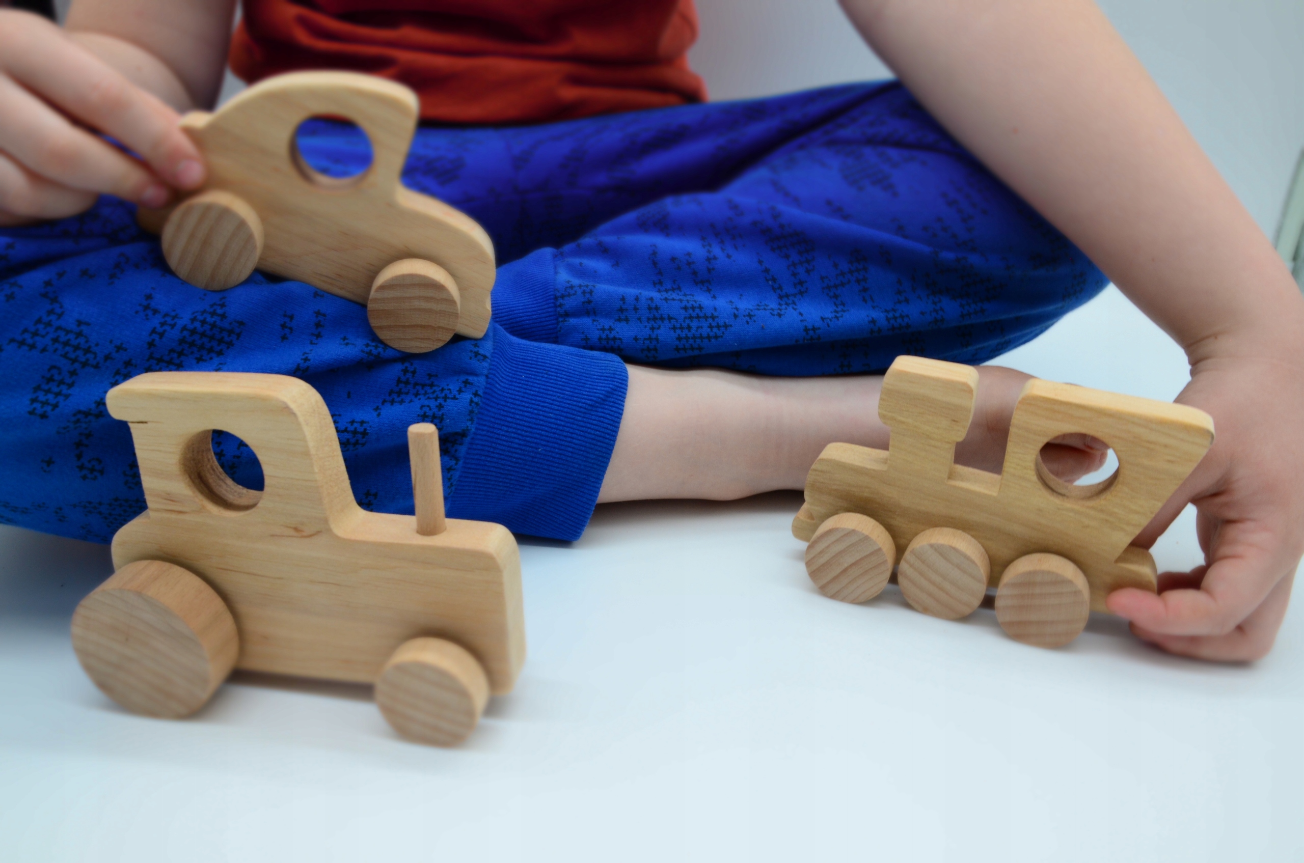 Drewniane autko, traktor, pociąg, pojazd kpl 3 sztuk