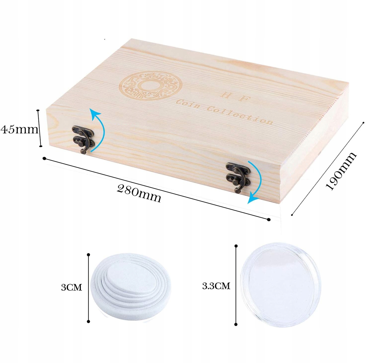 DREWNIANE PUDEŁKO DO PRZECHOWYWANIA MONET 100X OKRĄGŁYCH KAPSUŁEK NA MONETY