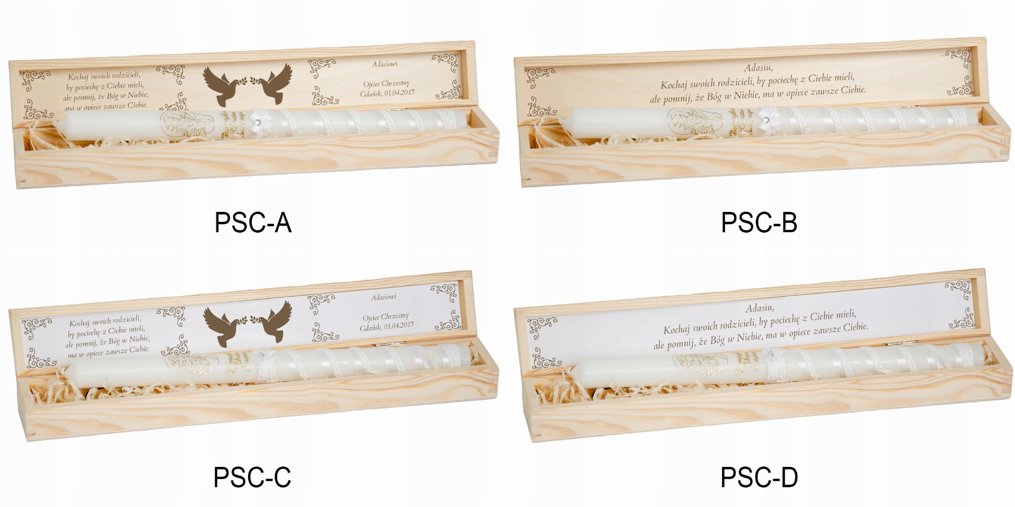 Drewniane pudełko na świecę do Chrztu Świętego PSC