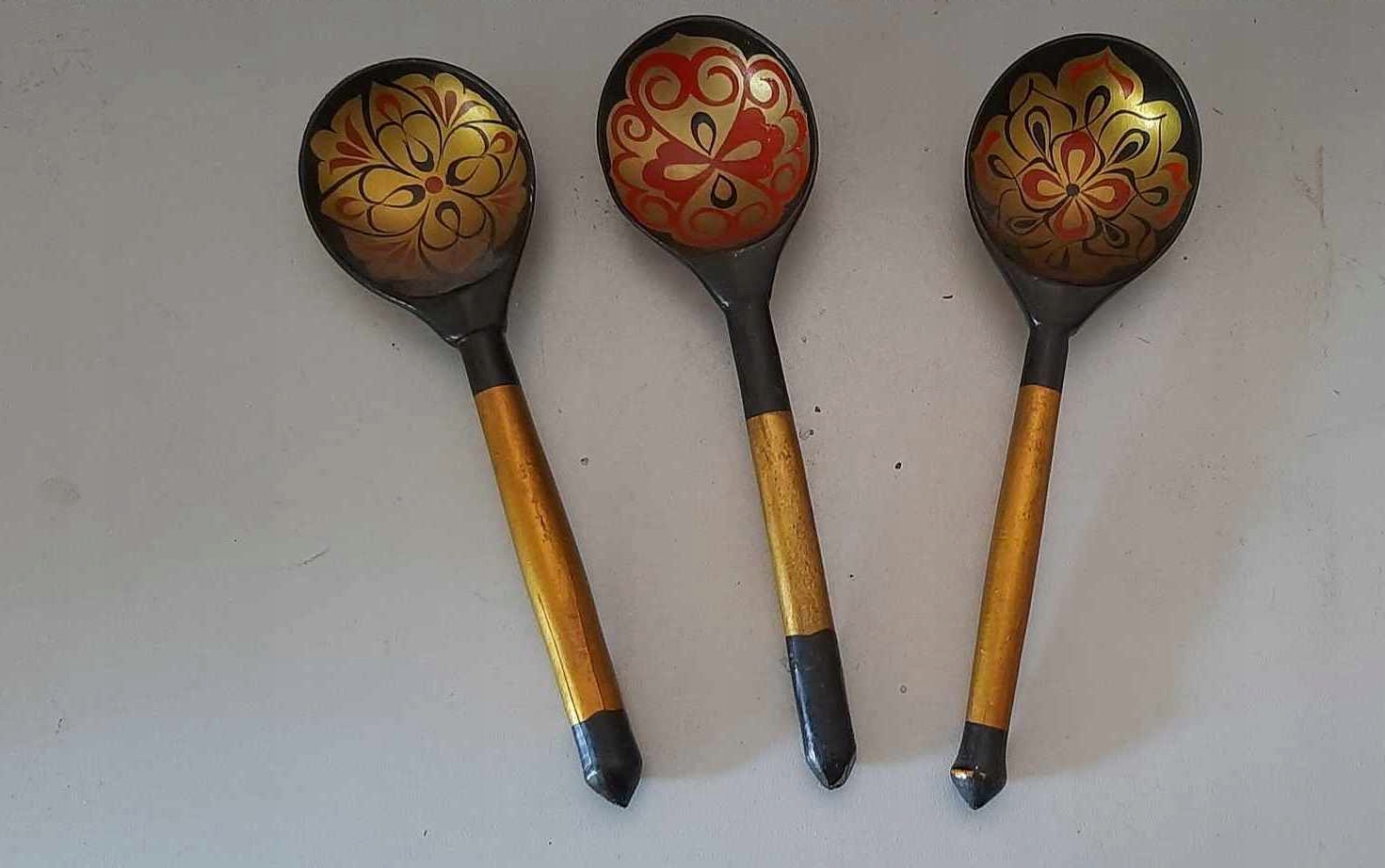 Drewniane łyżki ozdobne hohloma khokhloma PRL ZSRR (3 sztuki)